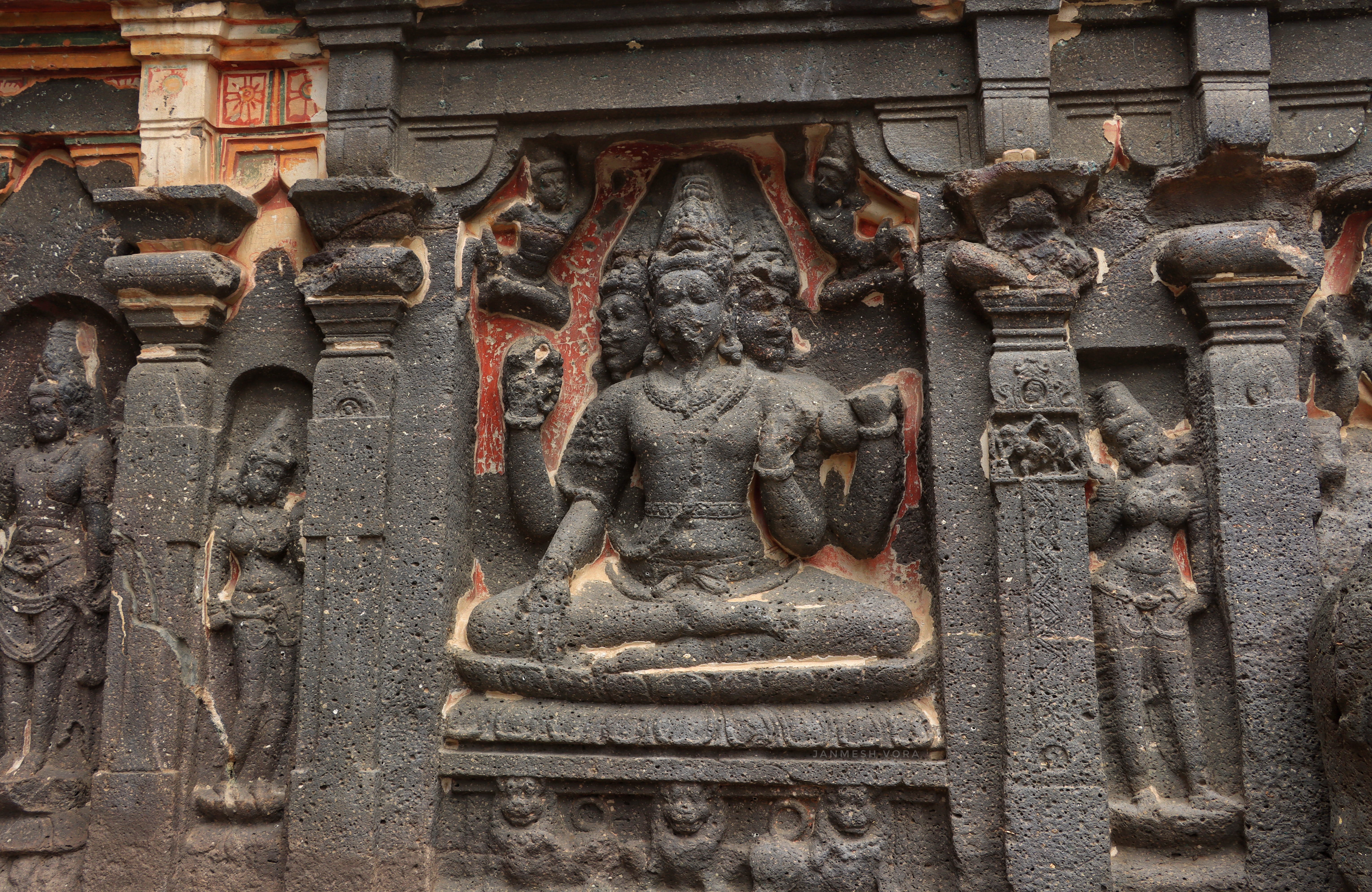 Lord_Brahma__Vishnu_and_Mahesh_Sculpture_at_Kailasanath.JPG Public