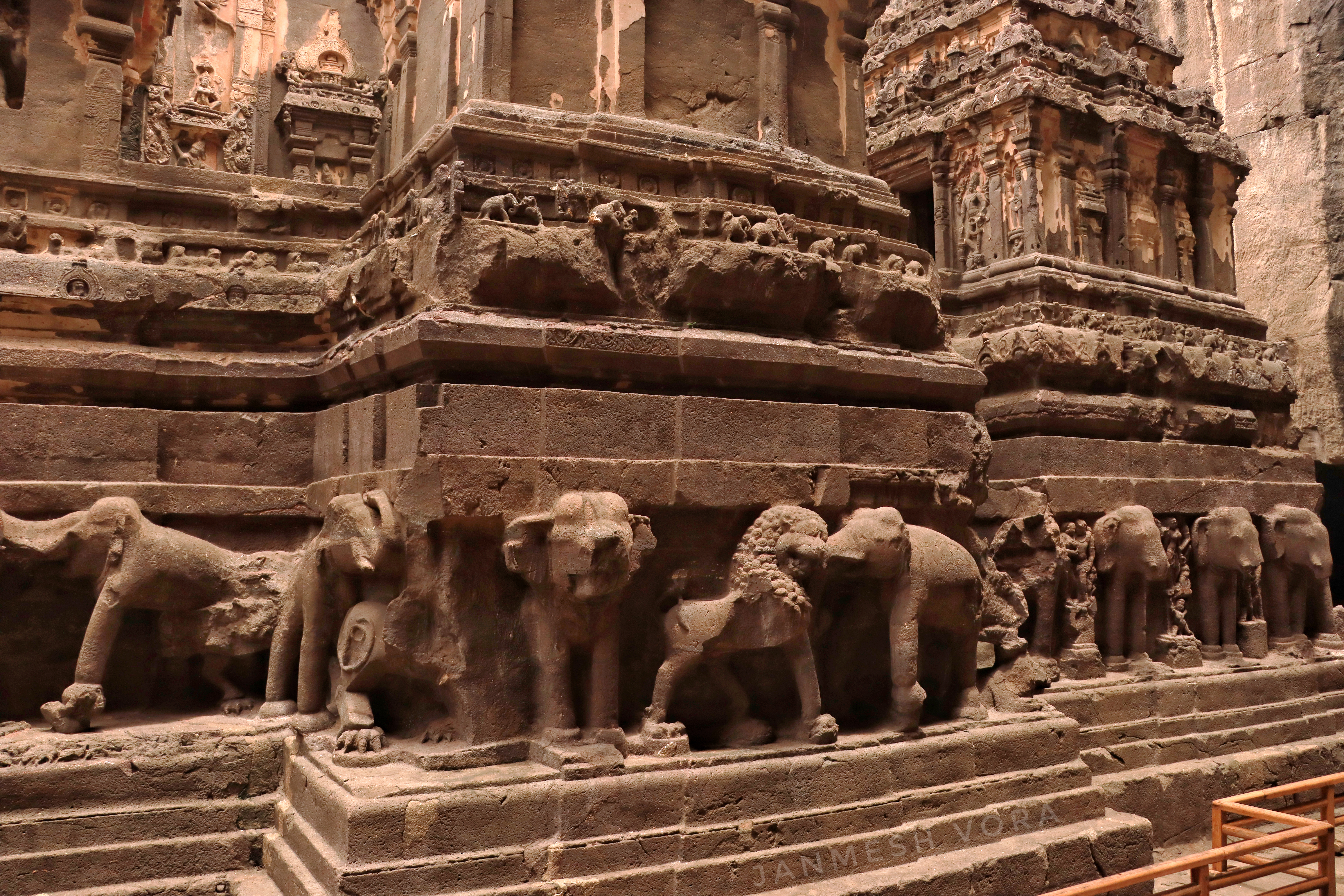 Ellora, Lion and Elephant imagery on the base of Kailasanath temple Public Deposited