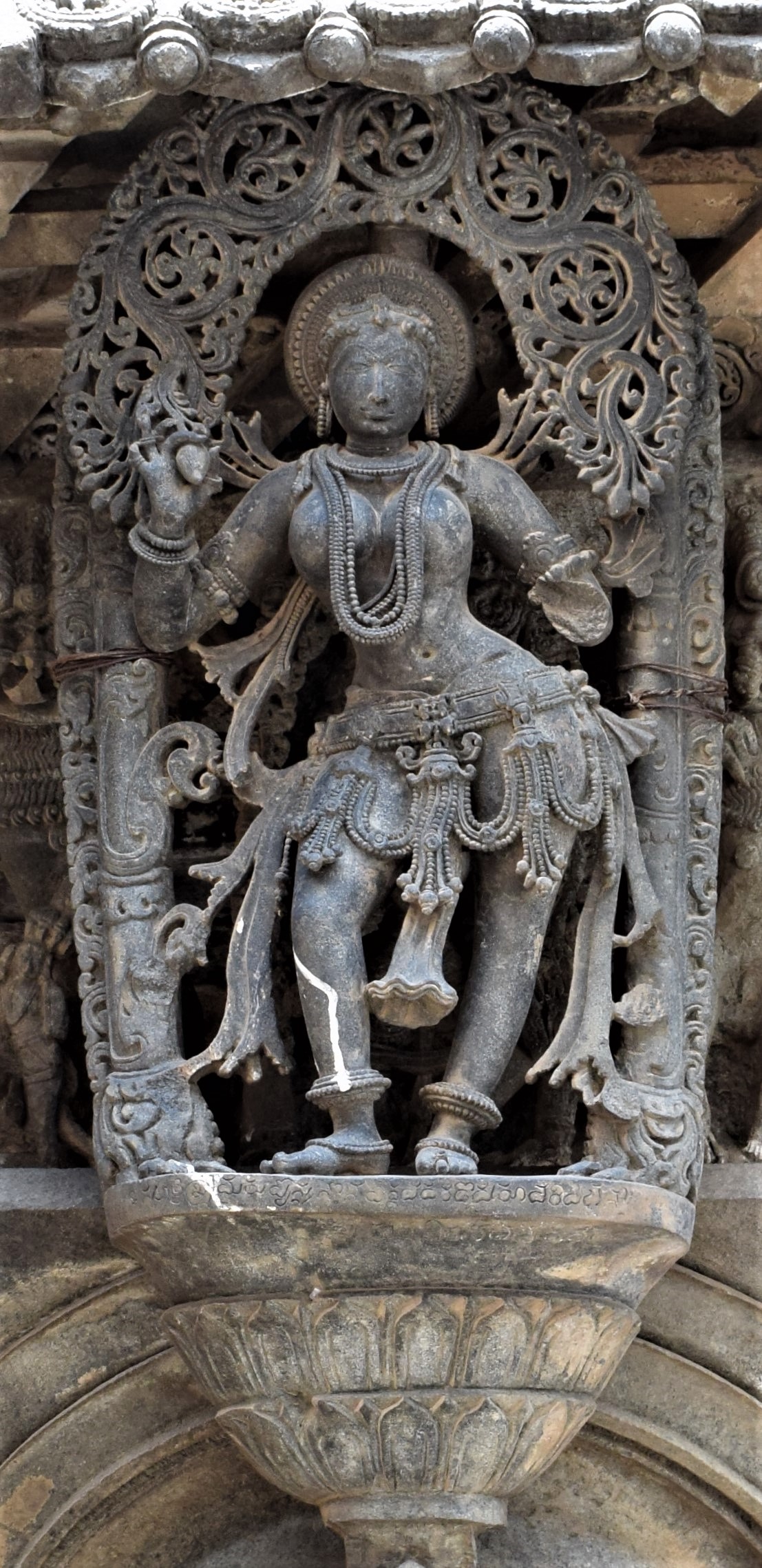 Chennakeshava temple, Beluru, Bracket figure, shilabalike - girl plucking a mango Öffentlichkeit Deposited