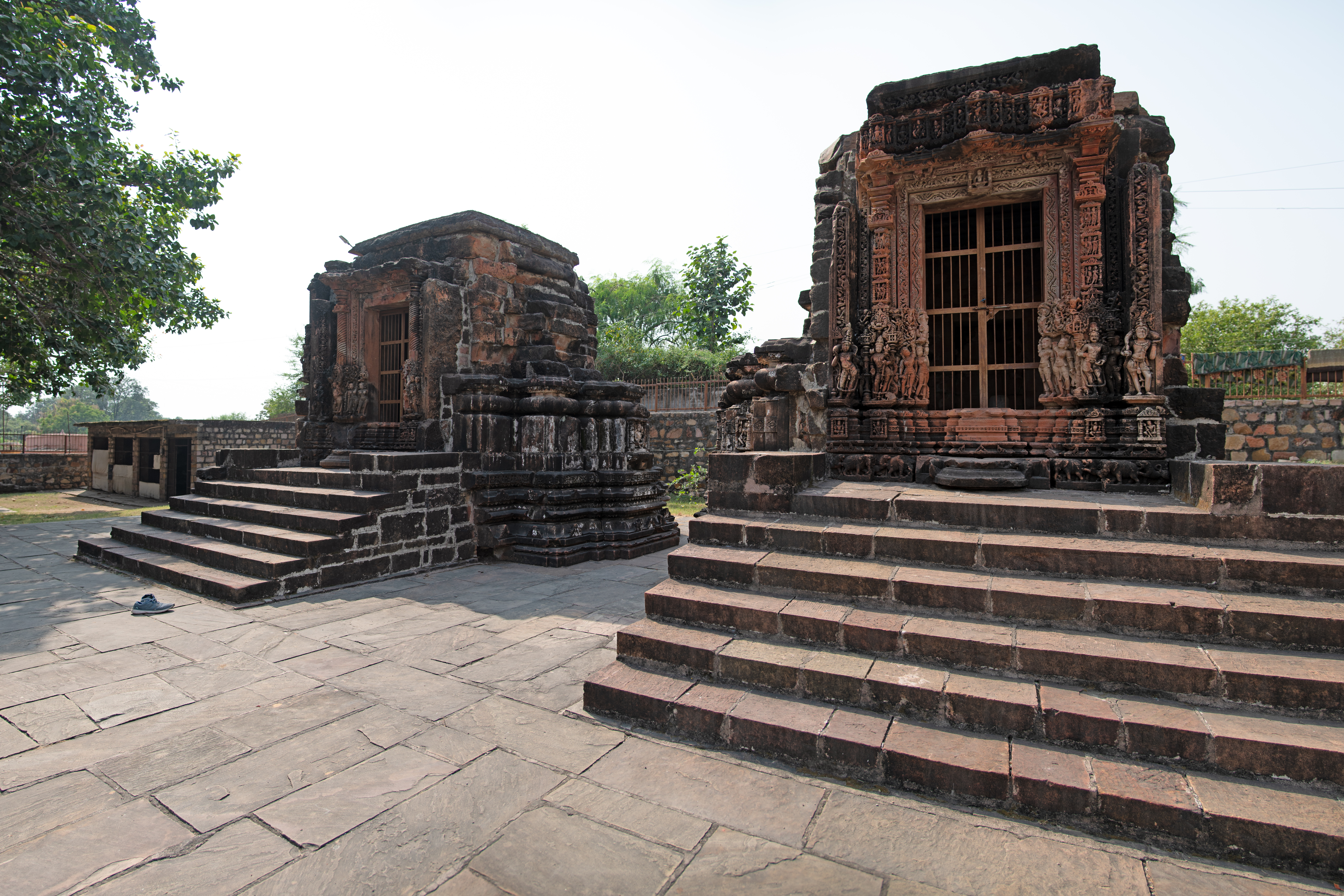 The Chandrabhaga temple complex has two temples, a Vishnu Temple (left) and a Shiva Temple (right), situated on their respective platforms behind the Sitaleshwar Temple. Both temples presently consist only of the garbhagriha (sanctum sanctorum), which can be accessed by a set of steps.