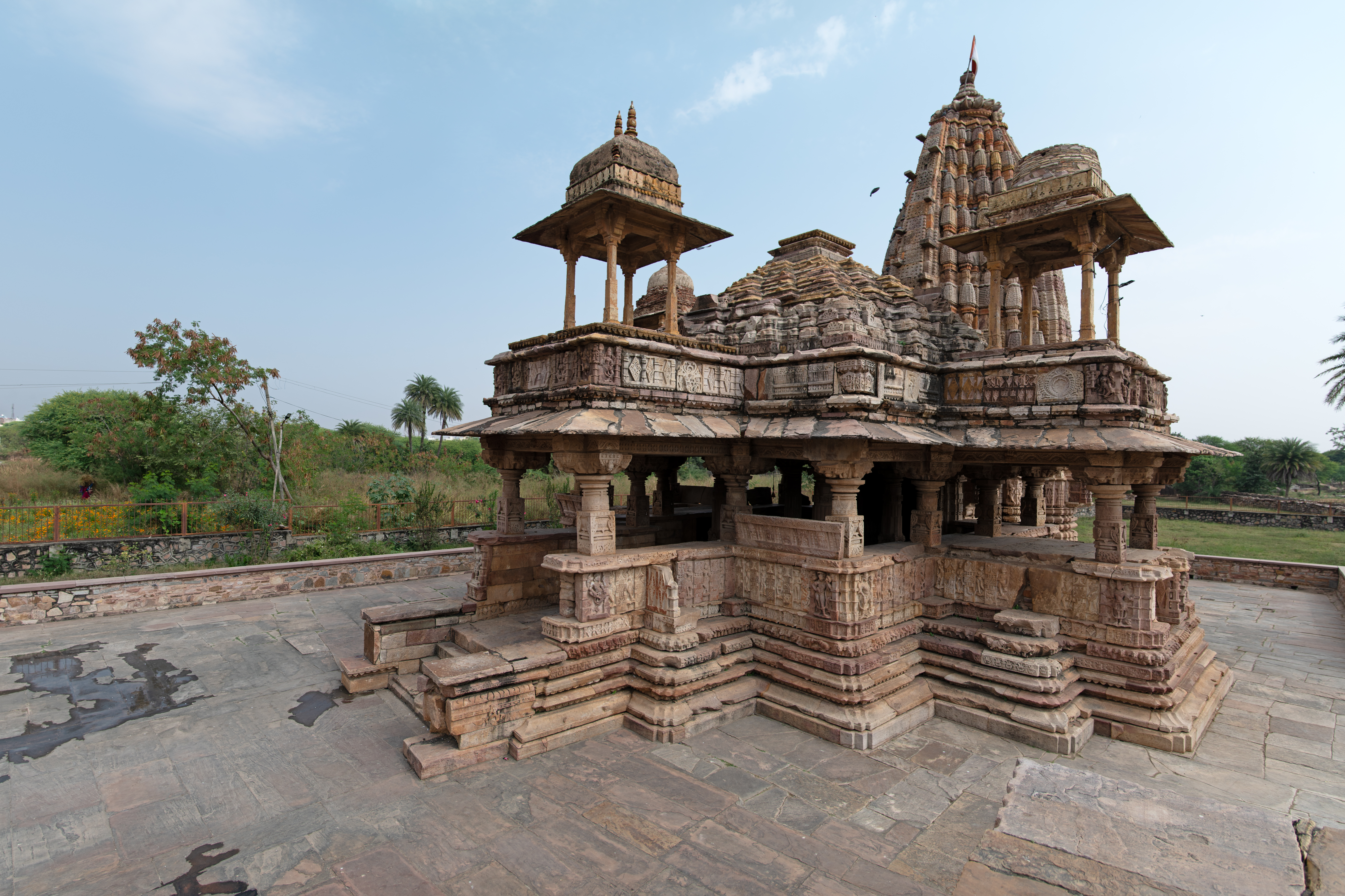 Situated within the Bijolia temple complex, right next to the Mandakini Kund and behind the Mahakal Temple, stands the remarkable Undeshwar Temple. It is one of the mature examples of the Bhumija variety of temples. It has a central projection on each of the four faces, the quadrants so formed filled with miniature spires in vertical and horizontal rows right up to the top. The name Undeshwar originates from the fact that the inner sanctum of this temple is located about 2.4 meters below the floor level of the assembly hall.