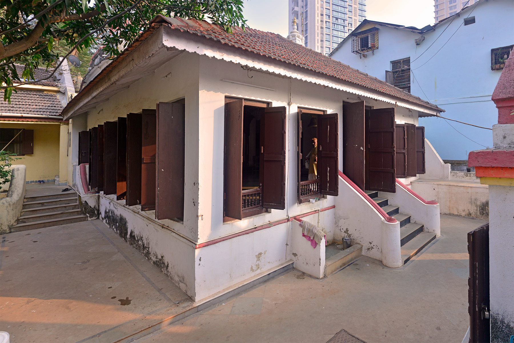 The Vyankatesh Balaji Temple has retained many of its original architectural features, including the Mangalore tiled roof, thanks to the effort of conservation architect Sudhir Joshi. The interior receives natural light through high windows on three sides. The windows have wooden balustrades which are indicative of the floor being used as a working space.