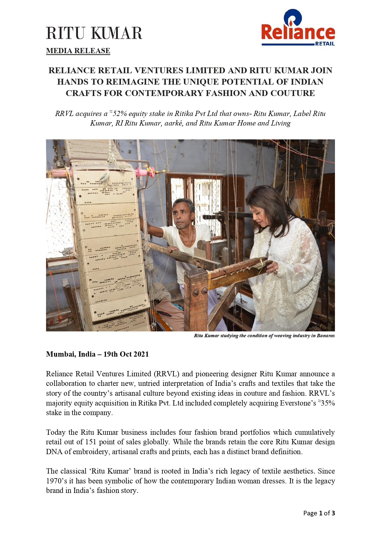 Expansion of Reliance Retail Pubblico Deposited