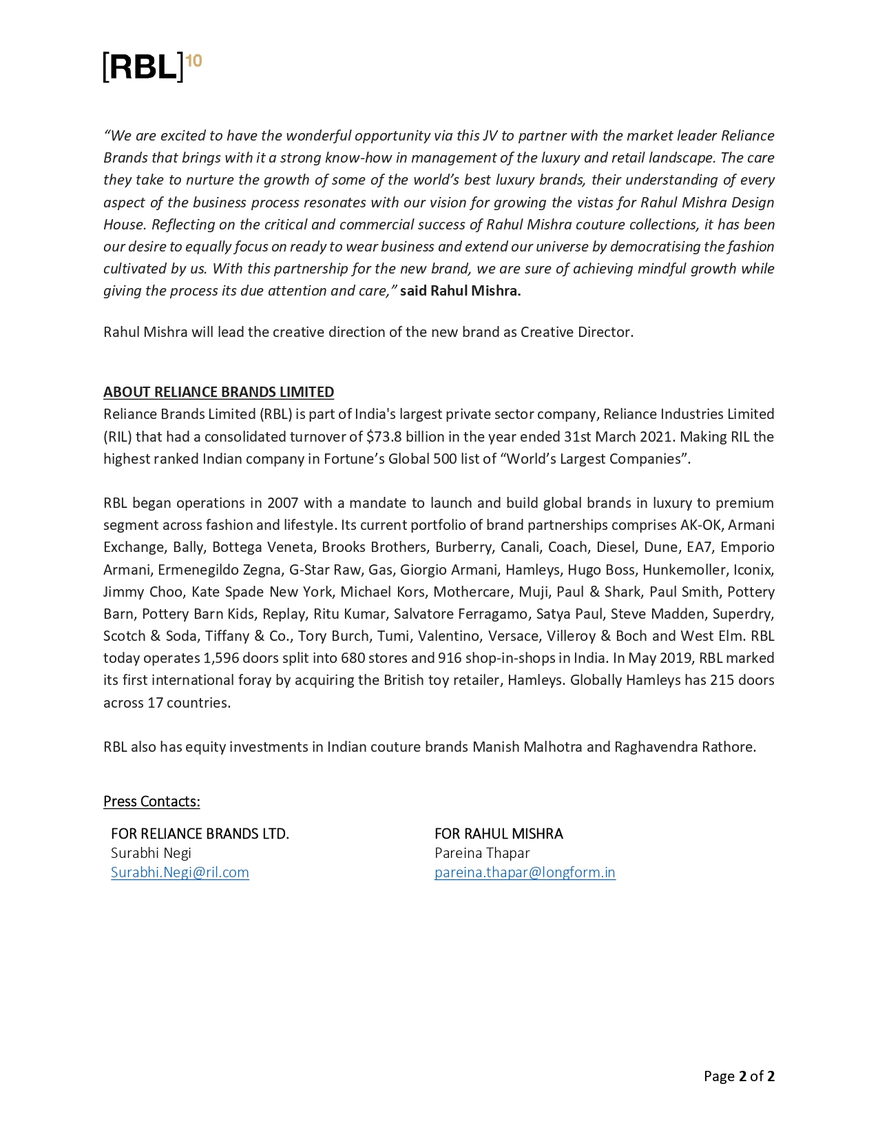 Reliance Retail expands partnerships with leading designers to include Rahul Mishra and Abraham and Thakore. Image Courtesy: Reliance Industries Limited.