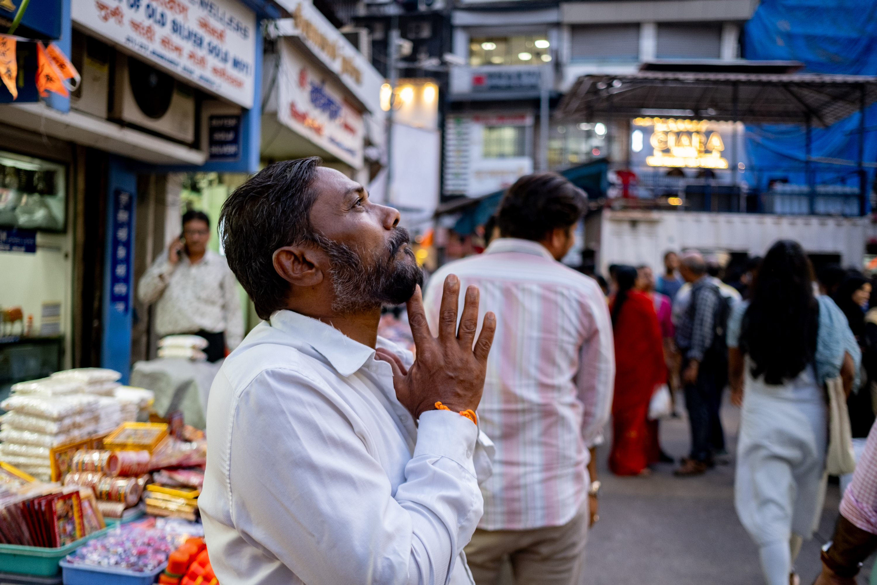 On their way to work, office goers offer a quick prayer from the street outside the temple premises.