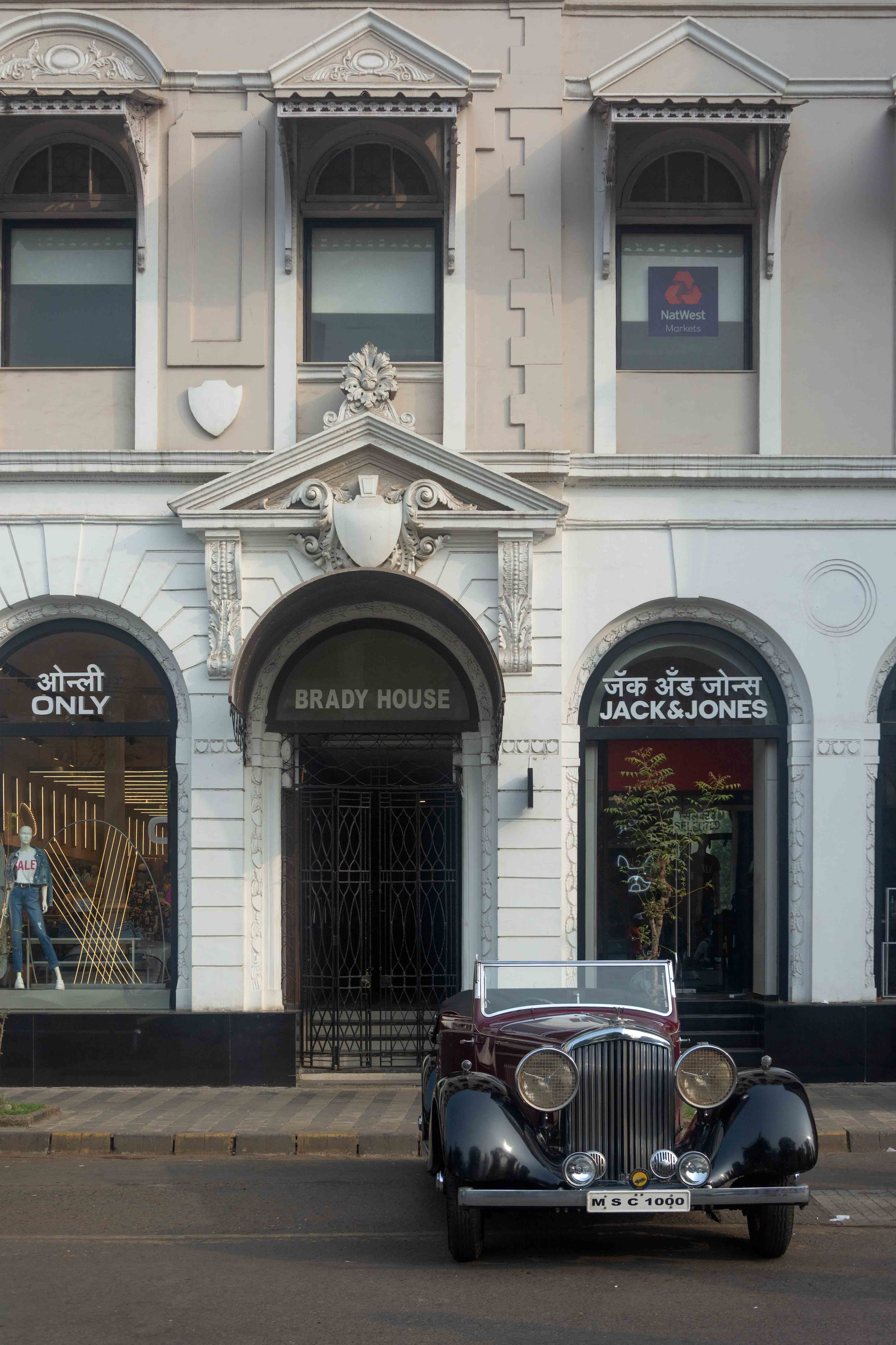 Vintage car is parked outside the Brady House entrance. The ground floor of Brady House (Shop No. 4) has been converted into a Jack and Jones store.