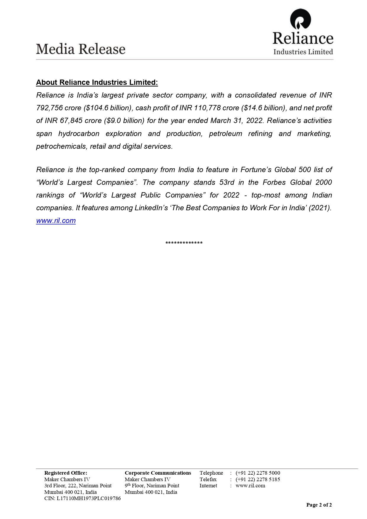 RIL welcomes franchise in Cricket South Africa’s T20 league into the Reliance family as part of its ongoing unconditional commitment towards the sports’ arena. Image Courtesy: Reliance Industries Limited.
