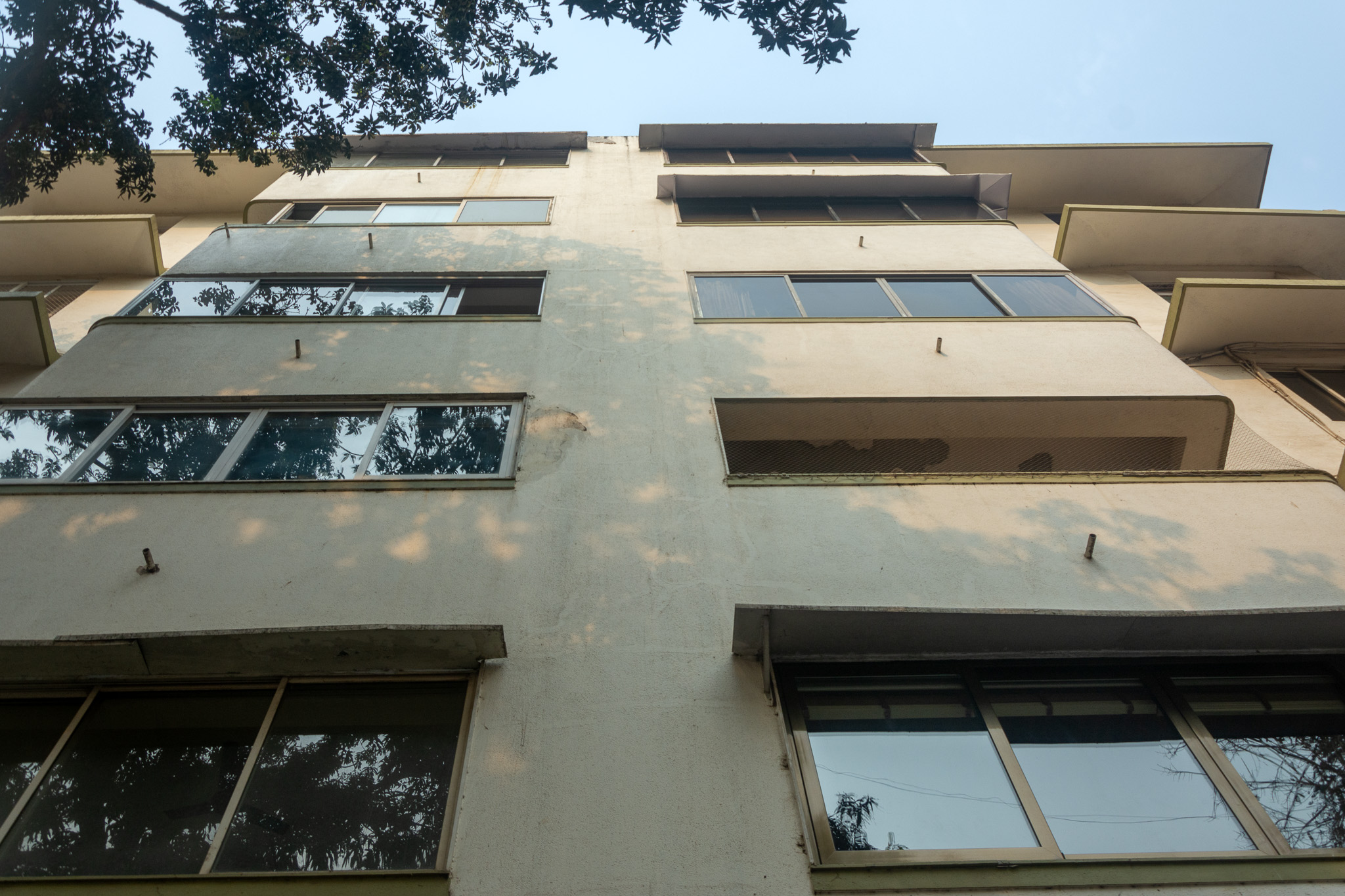 Curvilinear balconies with projecting eyebrows (a horizontal ledge extending outward above a window), Windsor House.