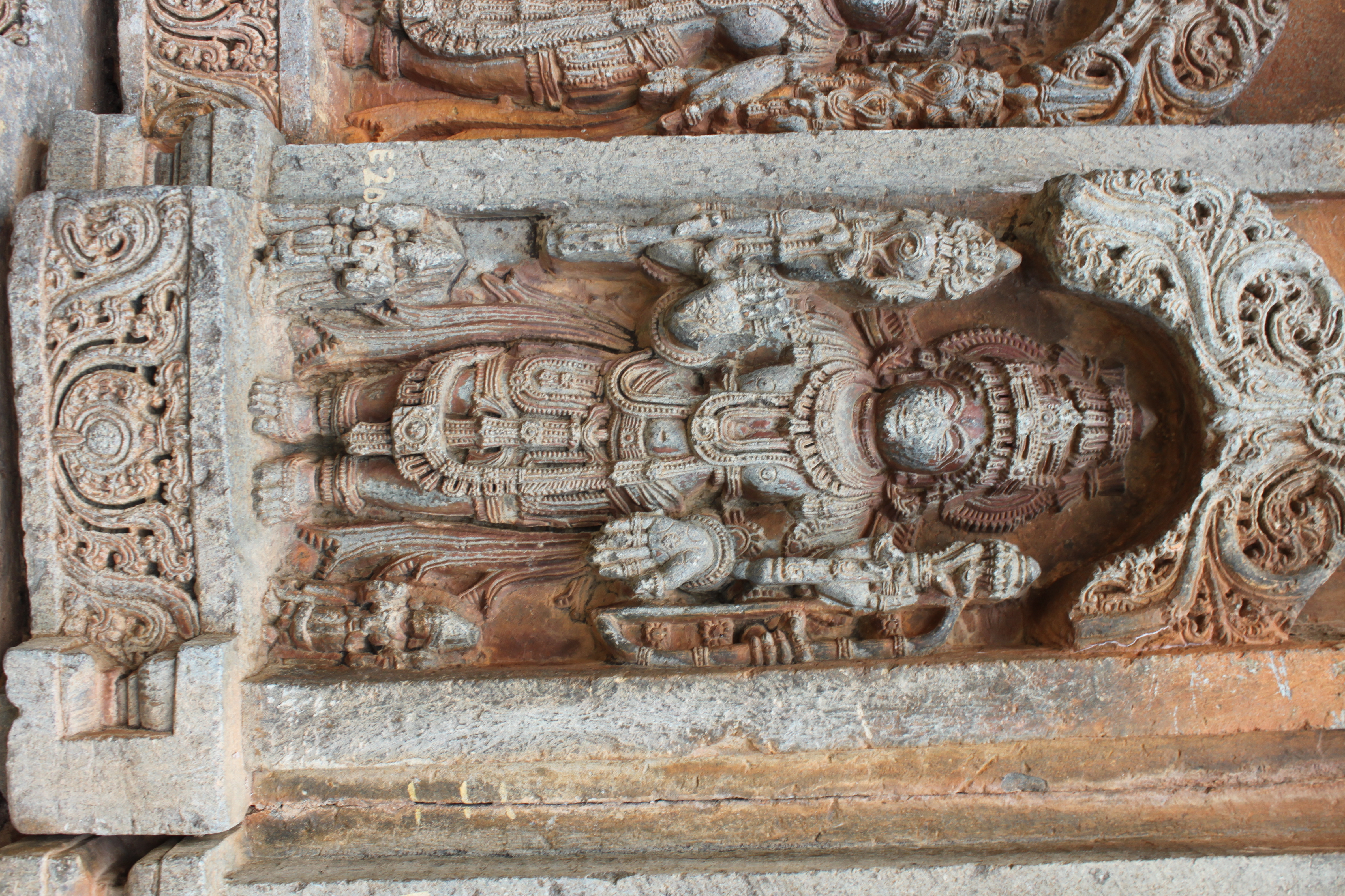 Image courtesy : Saurabh Saxena - https://puratattva.in/ Here Vishnu can be seen with Shankha, Chakra, Padma, bow, and the other two hands are in the Abhaya and Varada mudra.