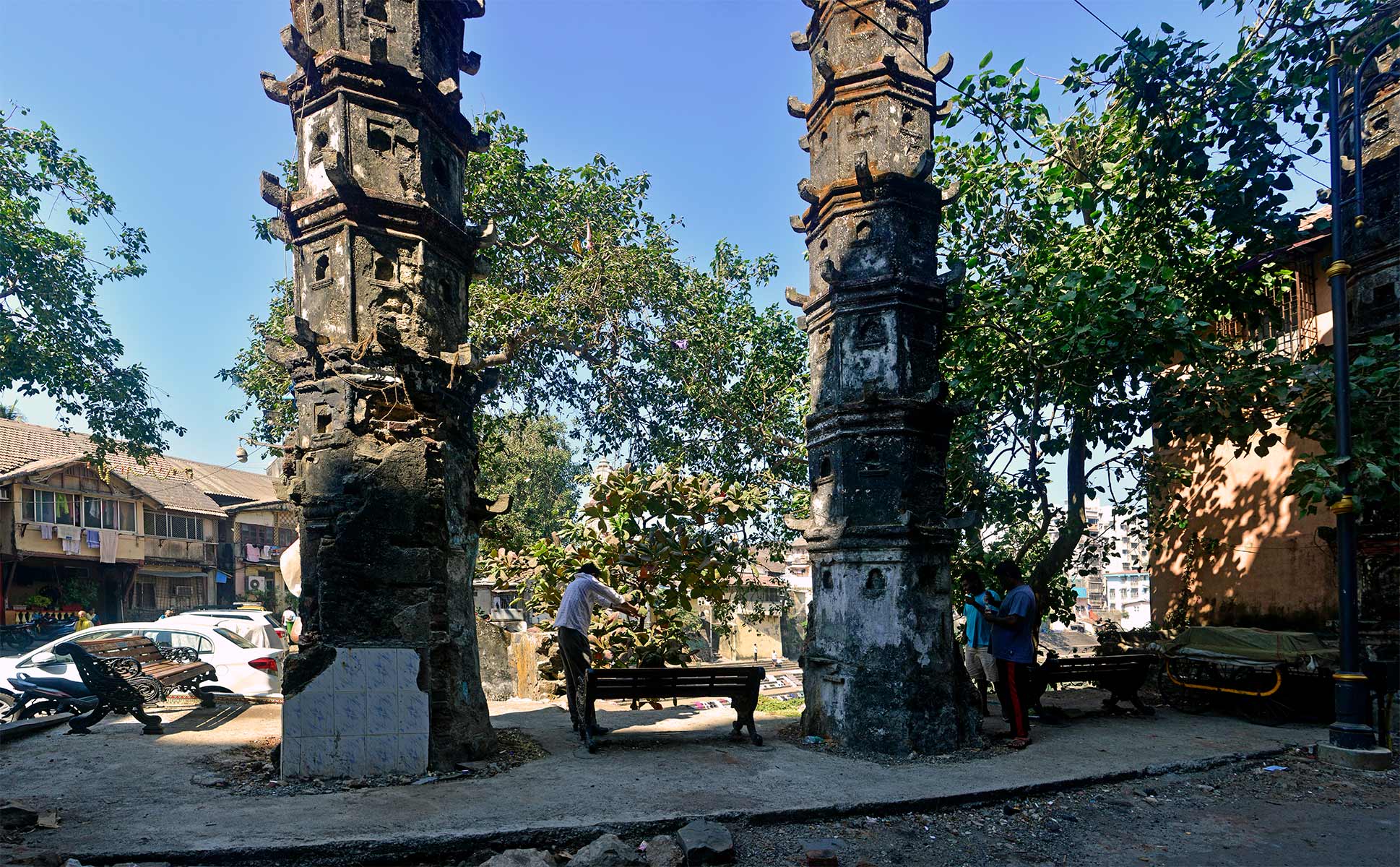 The deepsthambhs at the southern end of Banganga Tank are not only the largest in terms of their size, they are also unique in design, having influences from Goan temples. Those in the southeast corner have figures carved on them. Locals believe these deepstambhas are meant to be markers and they were built over the samadhis (burial places) of revered saints.