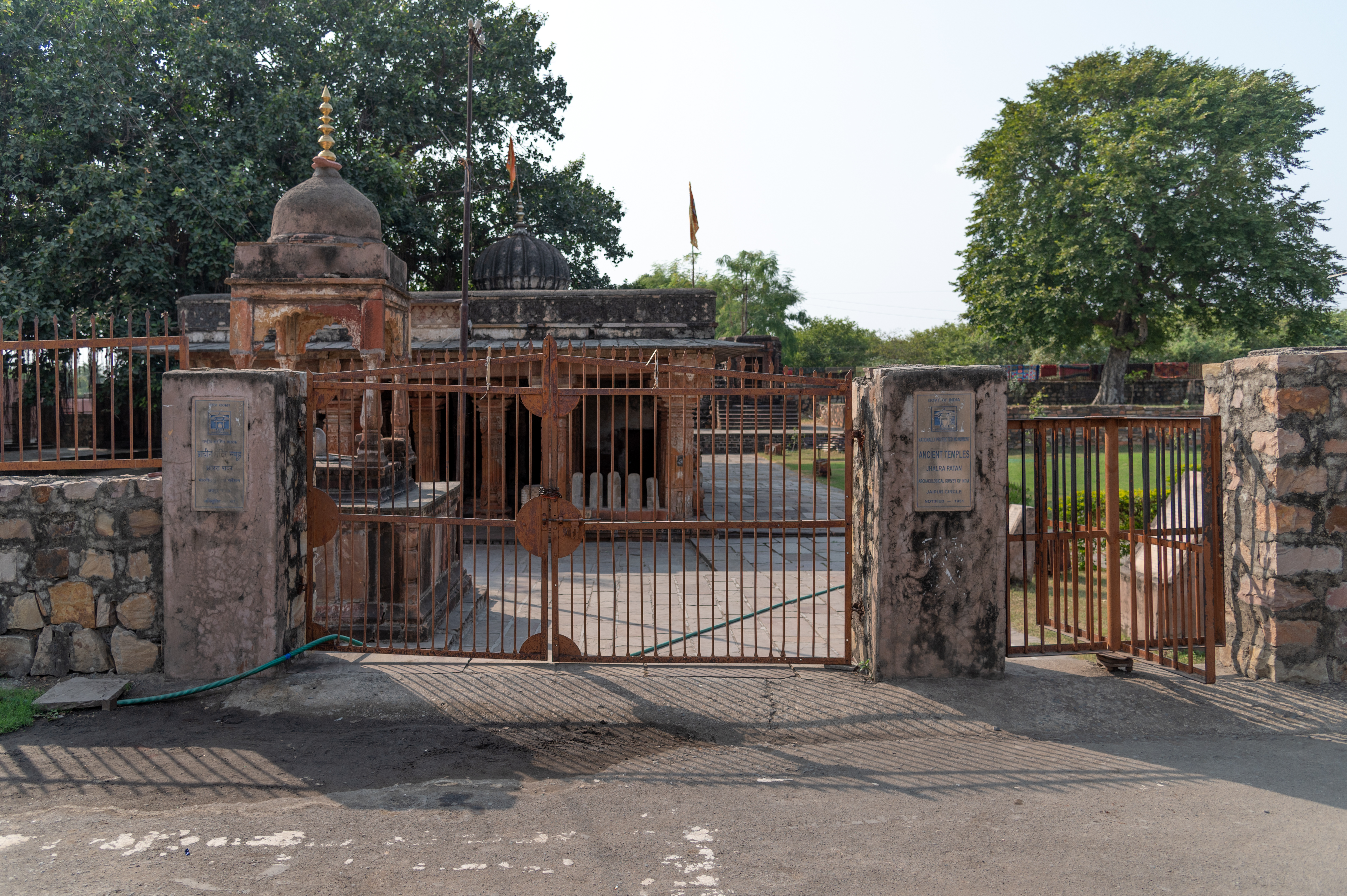 The ancient Chandrabhaga temples are located within a compound comprised of five temples, a Ganesha mandapa (pillared porch), several chhatris (memorials), a ghata (river bank), and numerous scattered sculptures. Chandrabhaga is also considered a tirtha (sacred pilgrimage site), where worshippers perform rituals and take baths. The entire complex falls under the protected monuments overseen by the Jaipur Circle of the Archaeological Survey of India.