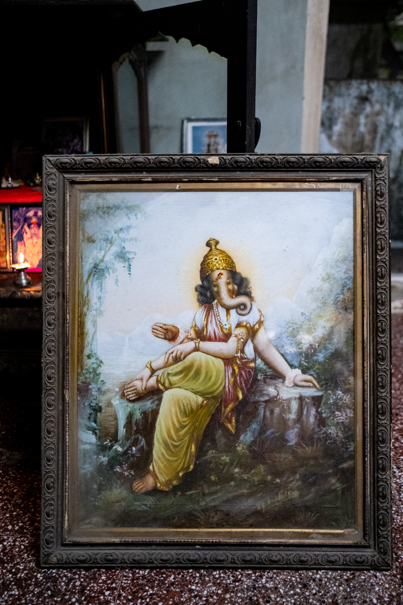 Among his various talents, Narsu Vithoba Nakhva was a skilled painter. The family takes pride in this painting of Lord Ganesha created by him.