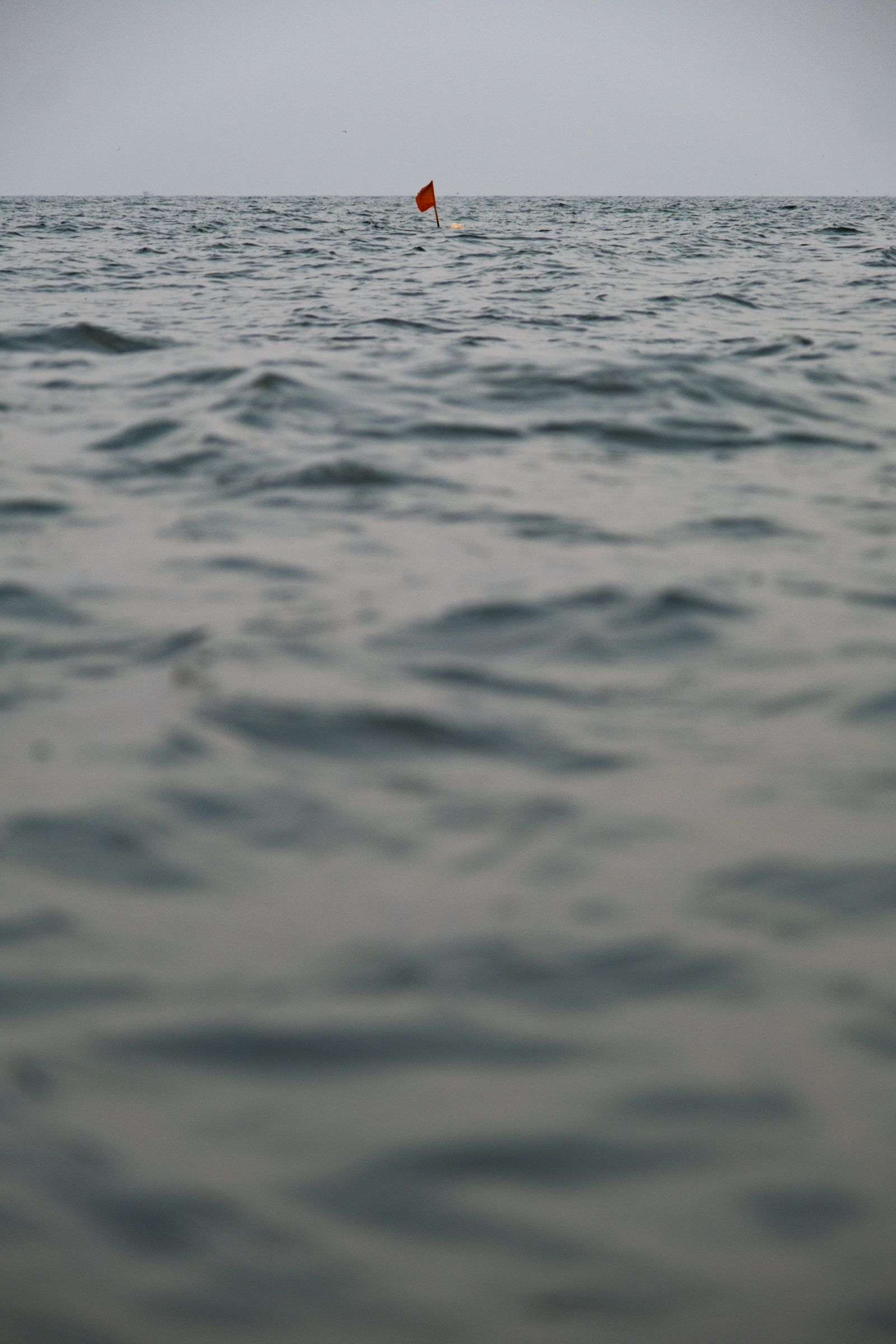 Flags are floated on the surface as visual markers to indicate the location of the submerged net. Fishermen typically cast three to four nets within close range of the boat.