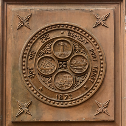 Bombay Port Trust emblem in Ballard Estate Öffentlichkeit Deposited