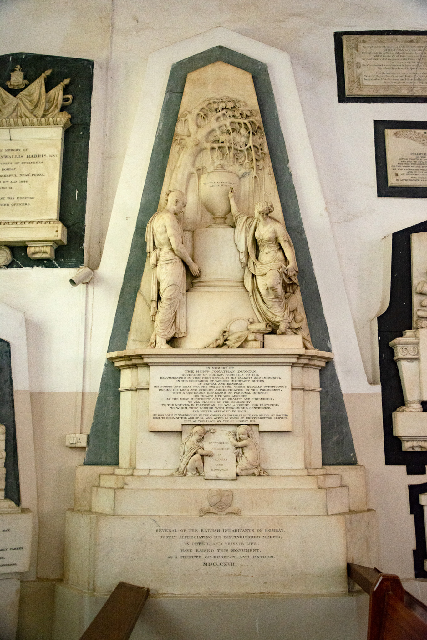 Born in Scotland, Jonathan Duncan came to India at the age of 16. He began his career in India in 1772, and in 1784, he was one of the charter members of the Asiatic Society founded in Calcutta by William Jones. In 1791, he started the Sanskrit College in Benaras to promote the study of Hindu laws and philosophy. His lifelong interest in cultivating Brahminical knowledge is reflected at his memorial, which has a dhoti-clad bare-chested Brahmin scholar.