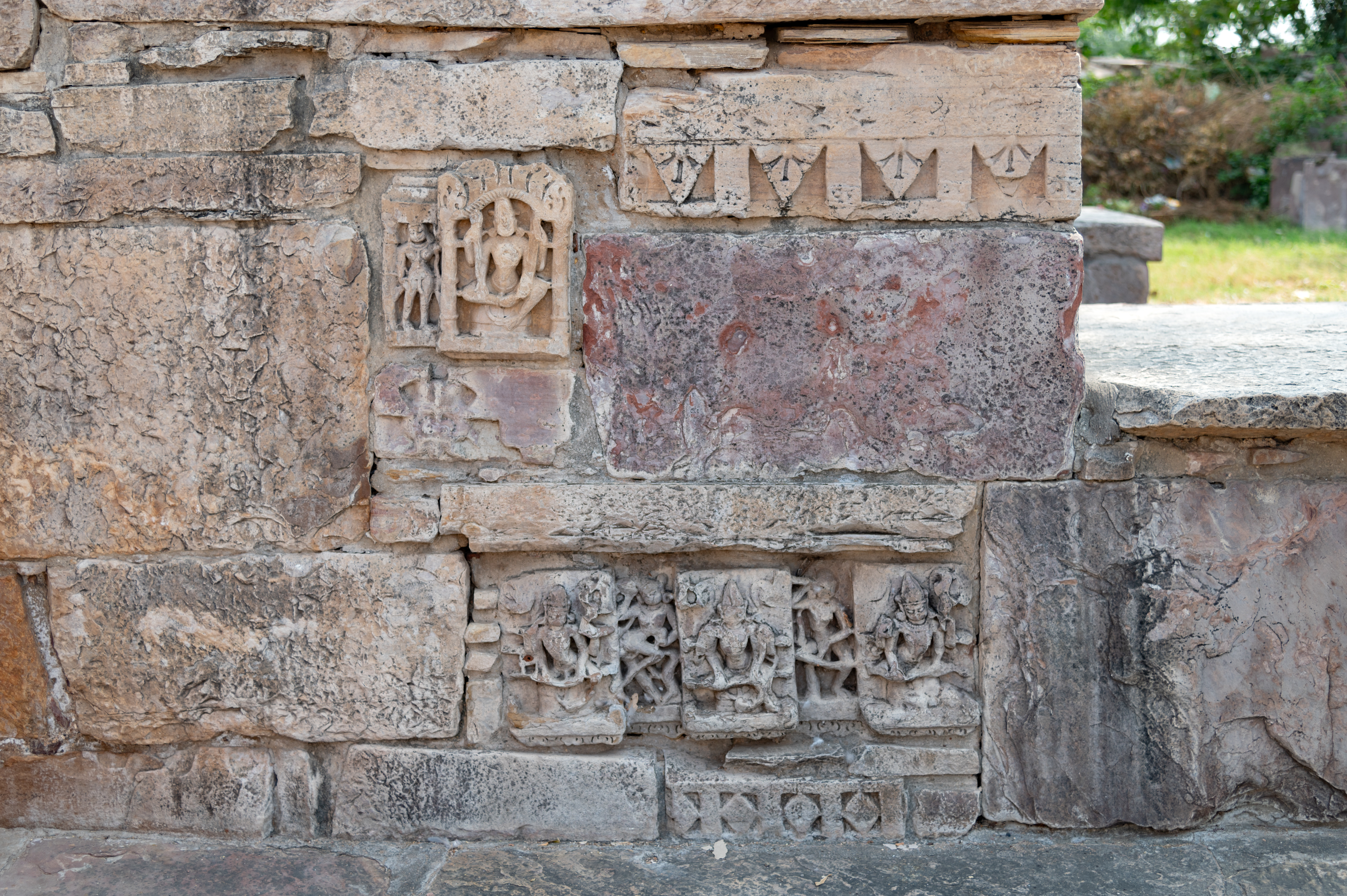 The varying sizes and stylistic differences in these sculptures, added on the walls of the Mandakini Kund, further suggest they were not originally part of the kund.