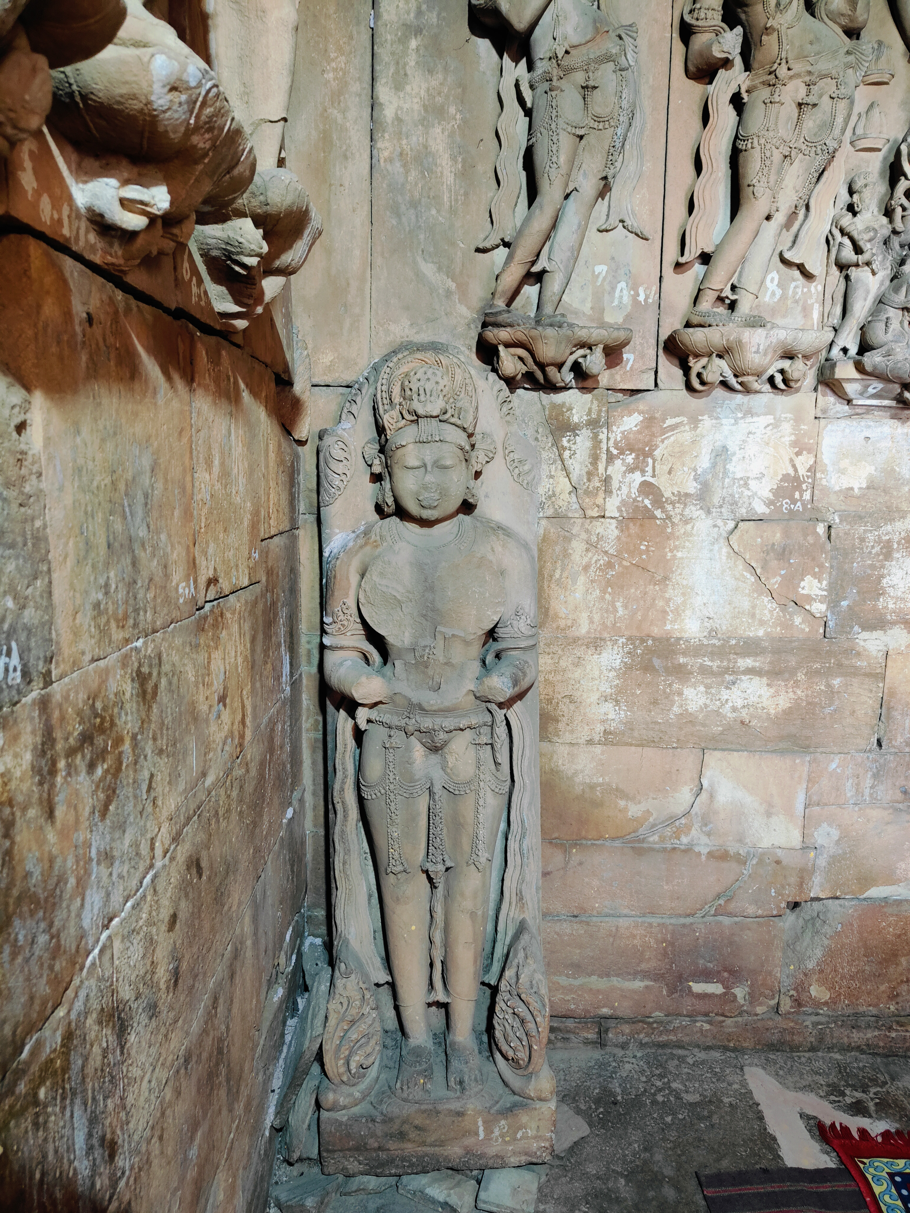 A life-size female figure standing erect with broken hands which could have originally been in a gesture of veneration, in the sanctum of the Harshnath Temple. Her identity is unknown.