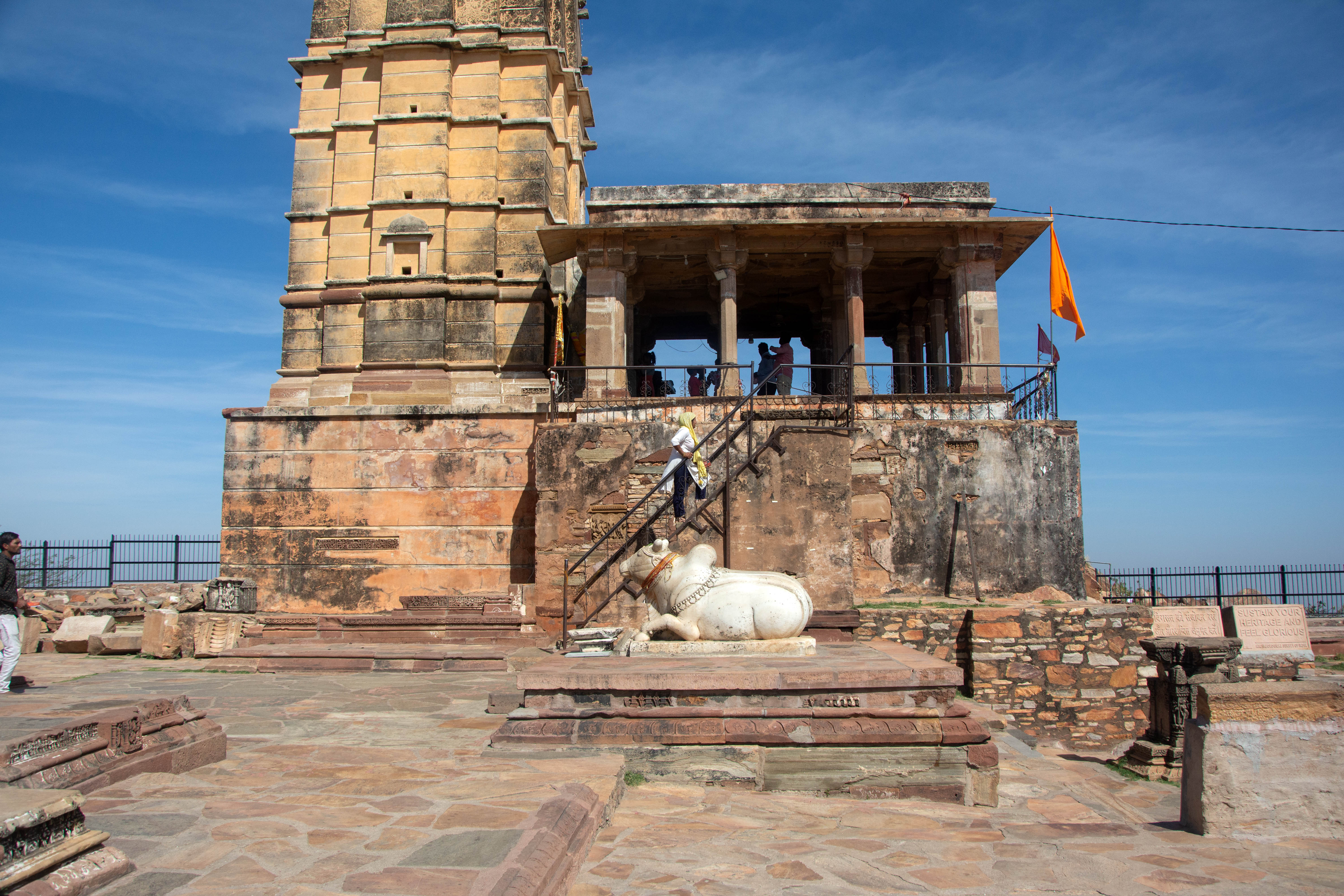 A white stone image of Nandi, Shiva’s bull, placed over the Nandimandapa facing the Harshnath Temple. The image could be a later replacement of the original image. The Verse-12 of the Harshnath stone inscription records ‘Resembling (in height) the peak of Meru, it is pleasant on account of an excellent arched doorway (torana-dvara), and well-carved bull (Nandi), and is full of manifold objects of enjoyment’. The mentioned image of Nandi, whether original or a later replacement, presents a visual correspondence to the epigraphical description of the temple complex.