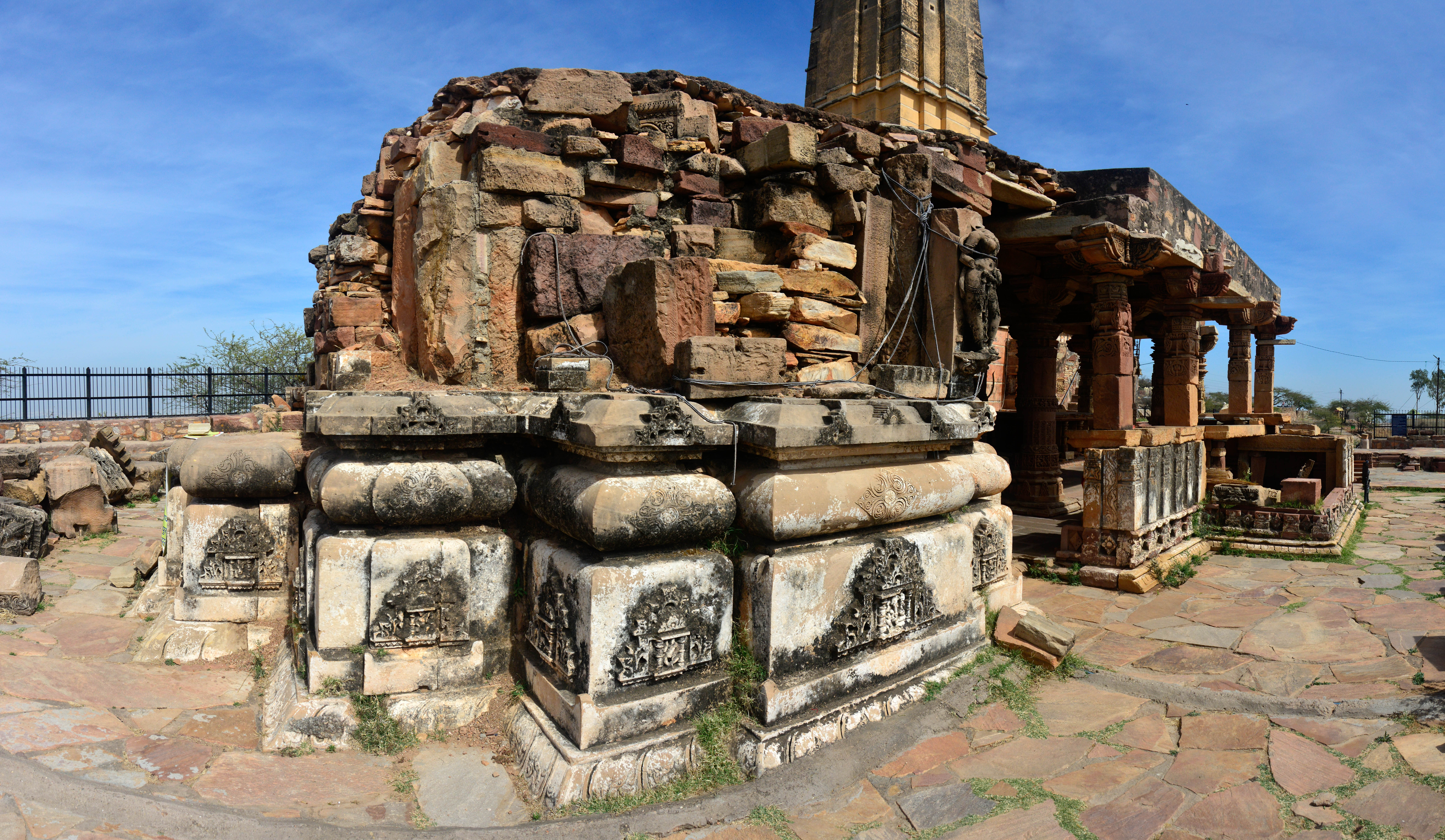 The jangha or wall portions of the sanctum are nearly in ruins. The temple lacks the pitha but begins from a single plinth course. The vedibandha is damaged in some areas, but otherwise, it had kumbha with intricate udgama motifs, with a small central box carrying a figure.