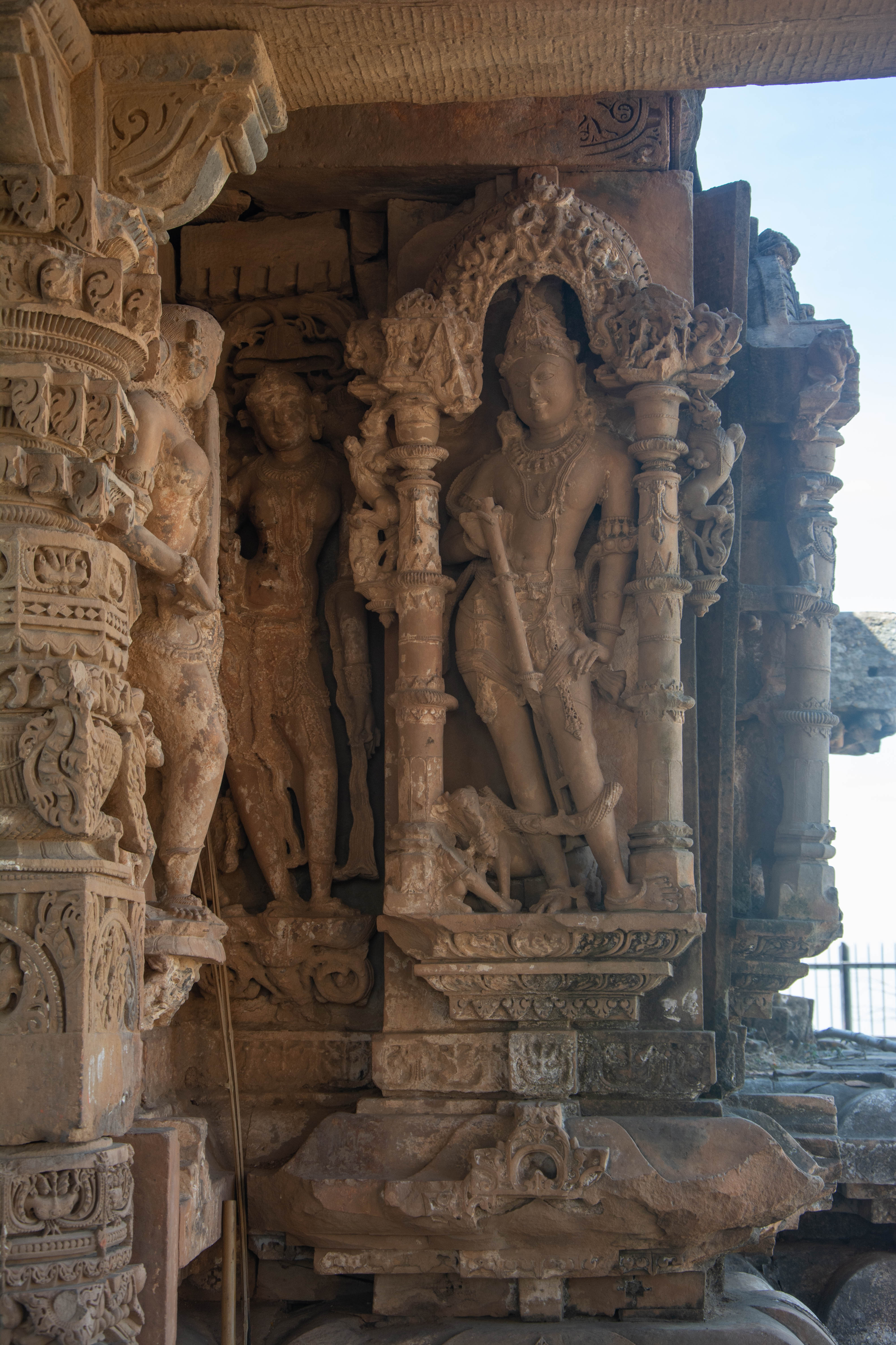 On the northeast corner of the Harshnath Temple wall, dikpala Ishana is depicted with his vahana, a bull. A dwarf figure feeding the bull from a vessel is an interesting feature of the image. A dwarf figure feeding the bull from a vessel is an interesting feature of the image.