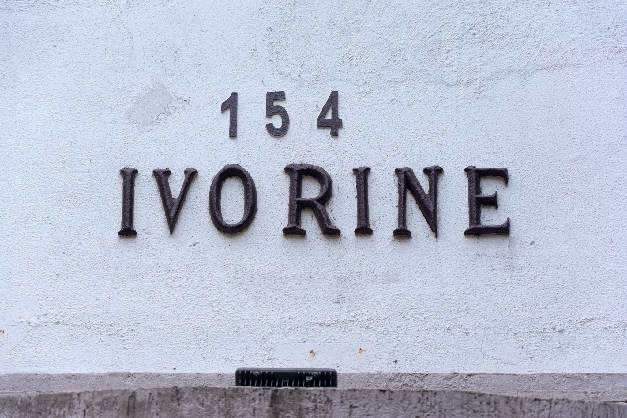 Ivorine, 154 Maharshi Karve Road, Churchgate. Agustea font is used for lettering.