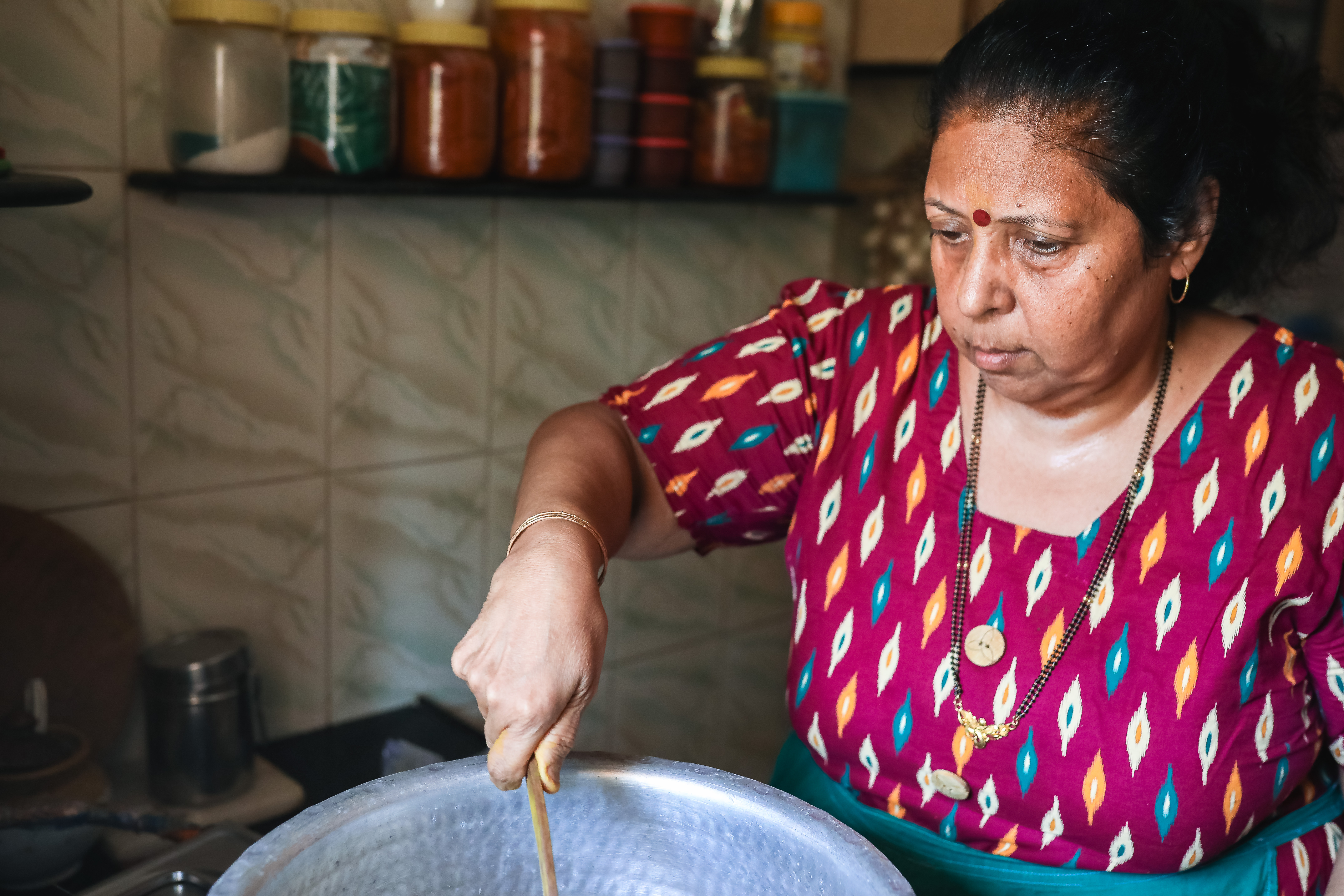 Veera Almeida runs her business from home, making and sharing her recipes online through social media. The ingredients and preparation style are passed down through generations in the family, from mother to daughter to granddaughter. The skill of mixing spices is learned through years of apprenticeship in the kitchen rather than by relying on a cookbook.