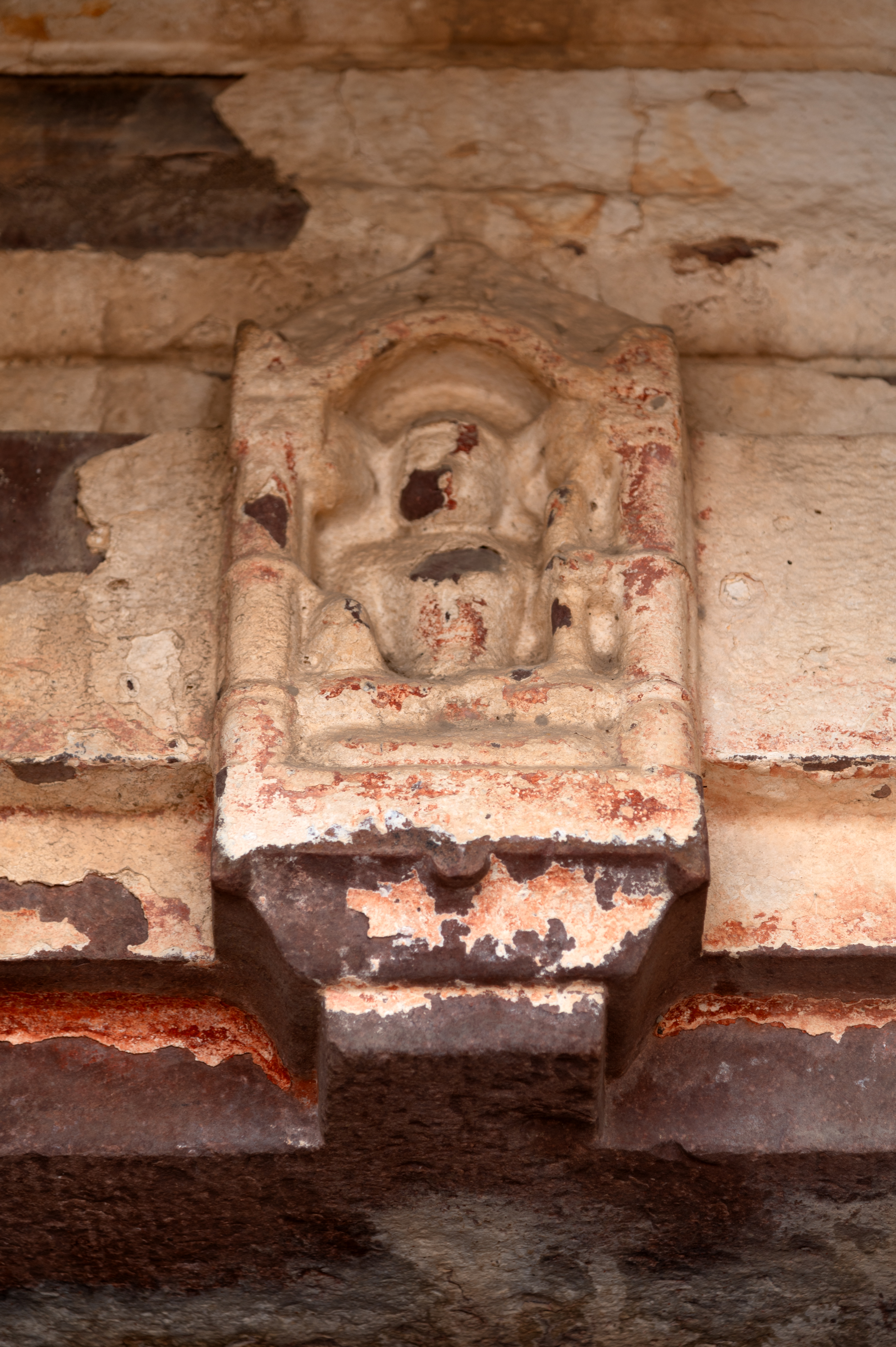 Seen here is a seated image of Lakulisa on the latatabimba (lintel) of the shrine along the western boundary of the Mahanaleshwar temple complex. The deity is holding a lakut (staff) in his hand. Lakulisa is a form of Shiva central to the Pashupata tradition of Shaivism.