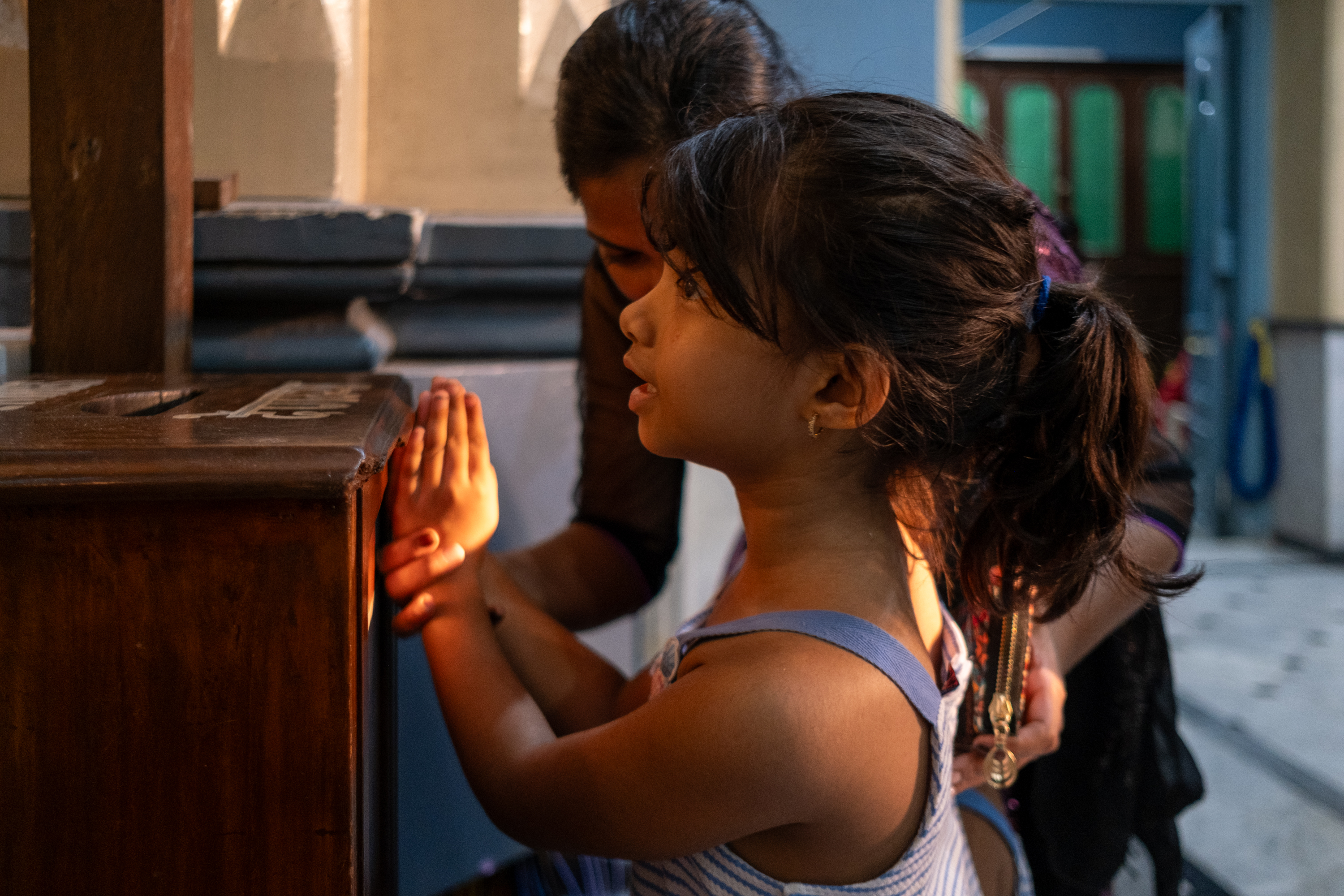 Children praying at Mount Mary Basilica Pubblico Deposited