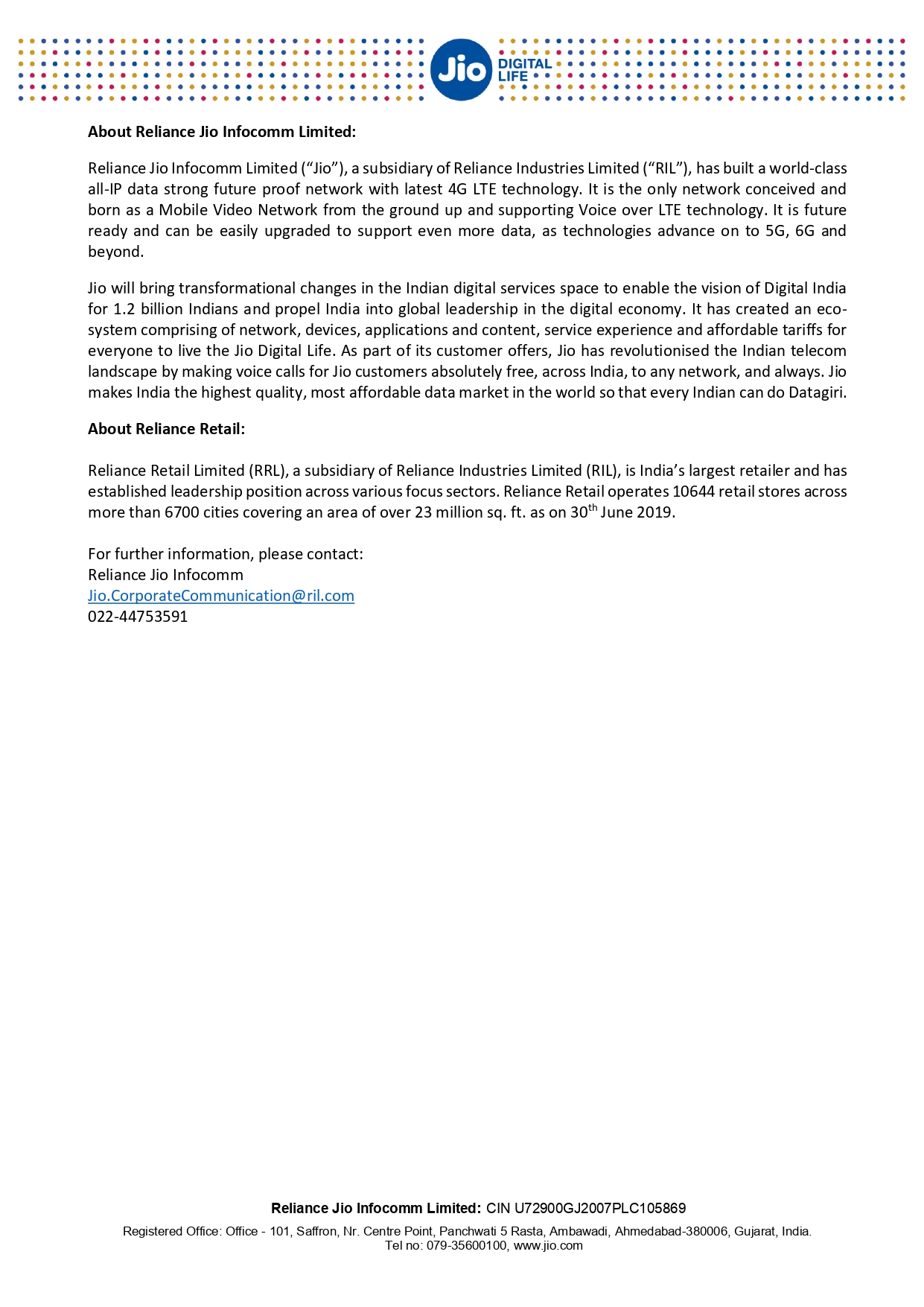 Jio launches JioFiber services commercially. Jio and Microsoft enter a globally unique long-term alliance to accelerate India’s digital transformation. Image Courtesy: Reliance Industries Limited.