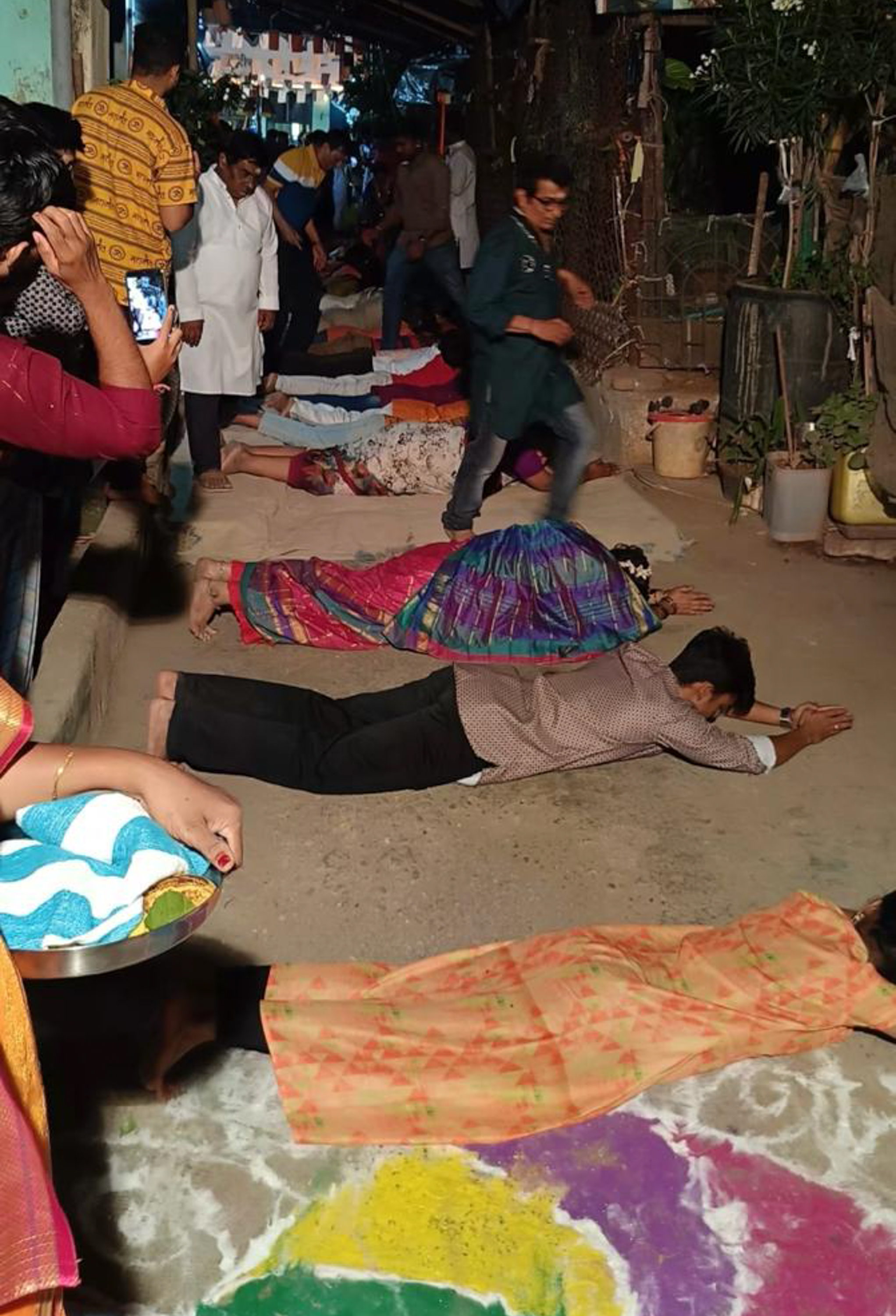 As the procession makes its return journey, devotees perform a ritual called lotangan. Lotangan is a term in Marathi that refers to the act of prostration or bowing down in reverence. It is a gesture of respect and devotion, commonly performed in front of deities, elders, or revered individuals.