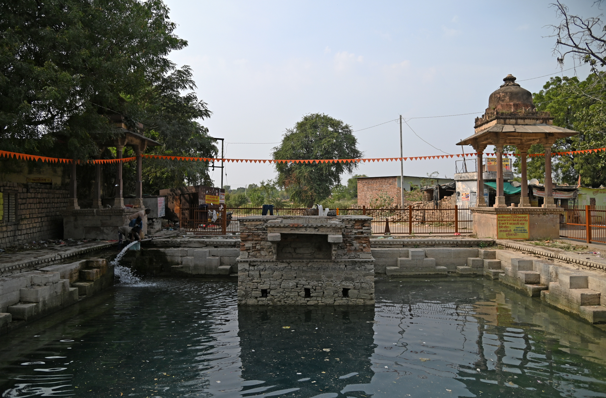 In front of the temple lies a water tank, seemingly a later addition as indicated by the presence of chhatris installed at its corners. The water level can be reached by steps. There is a raised platform on one side. The tank is used regularly by the locals for different purposes. However, a clear statement is made on the chhatris emphasizing the importance of maintaining the sanctity and cleanliness of this holy tank.