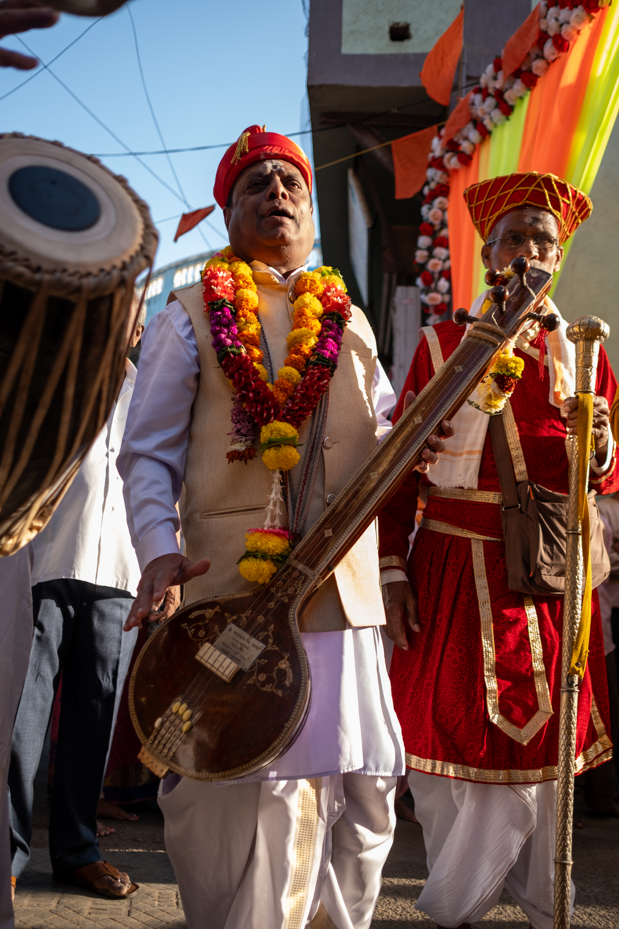 Abhanga is a form of devotional music and poetry narrated throughout the procession. The term ‘abhanga’ literally means ‘unbroken’ or ‘indestructible,’ symbolizing the eternal and continuous nature of devotion. They convey spiritual teachings, emphasizing the importance of inner purity, detachment, and the pursuit of moksha (liberation).