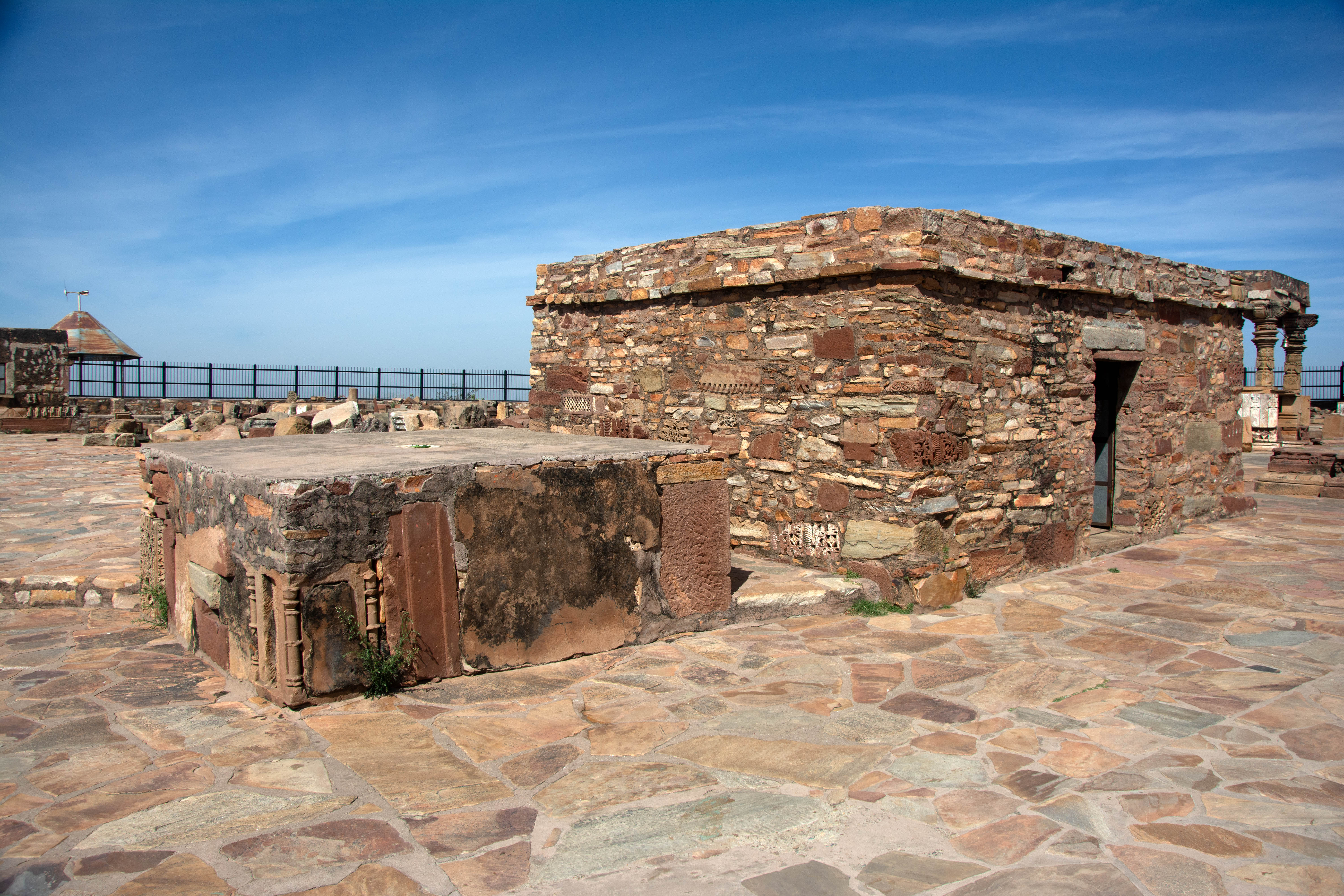 A structure of a very late date on Harsha Hill with some architectural remains from the 10th century CE placed inside.
