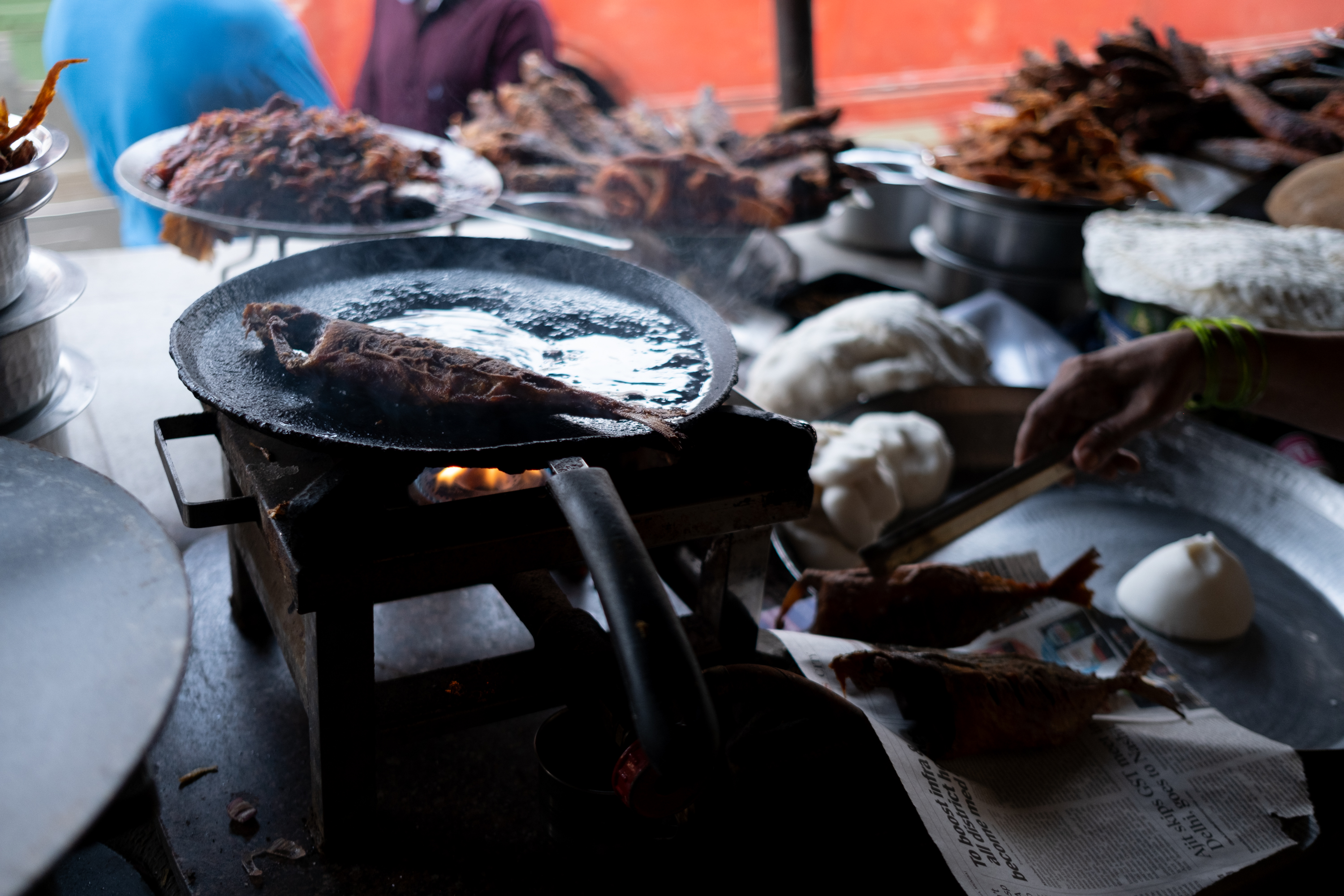 Bangda (mackerel fish), a popular fish item, is marinated in a spicy masala and then shallow-fried until crispy.
