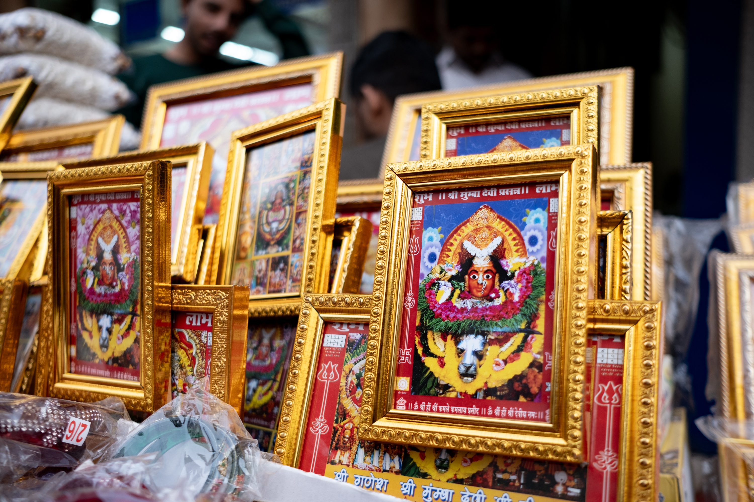 Images of Mumba Devi are available in shops. According to legend, Koli fishermen retrieved the self-manifested image (swayambhu) from the seas surrounding Mumbai.