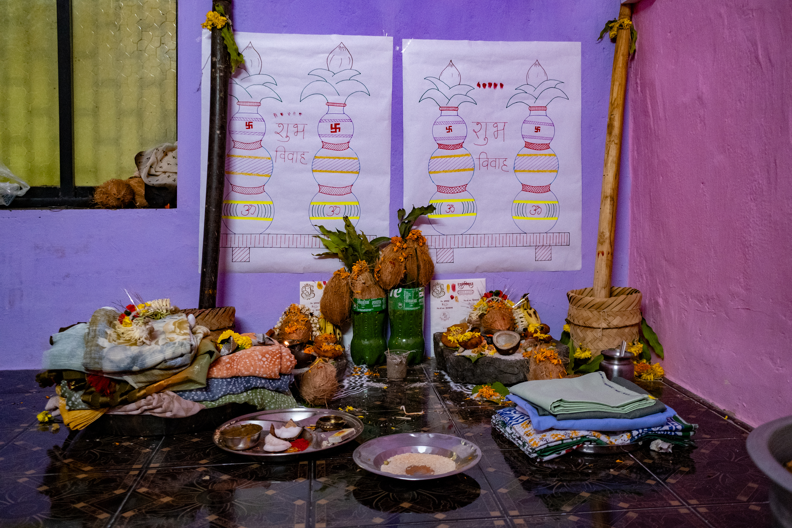 Lagnaach bedior (matchmaking) is entrusted to a family priest who matches the janampatrikas (horoscopes) of the bride and groom. On the advice of the priest, the families fix the muhurta (auspicious time and date) for the wedding.