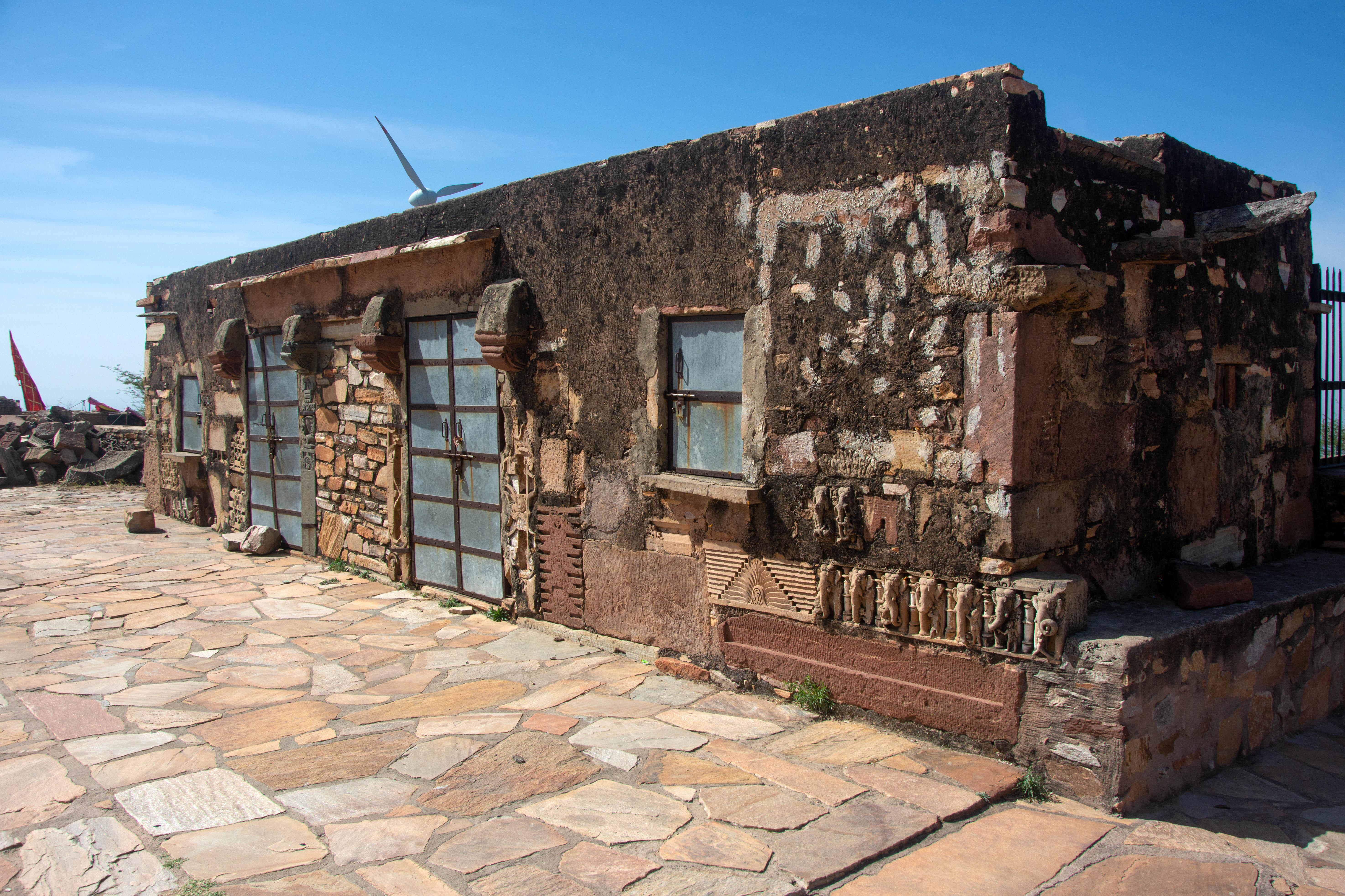 One notable architectural fragment affixed on the structure is a row of elephants (seen below the closed window), which must have once been part of the temple’s base moulding.