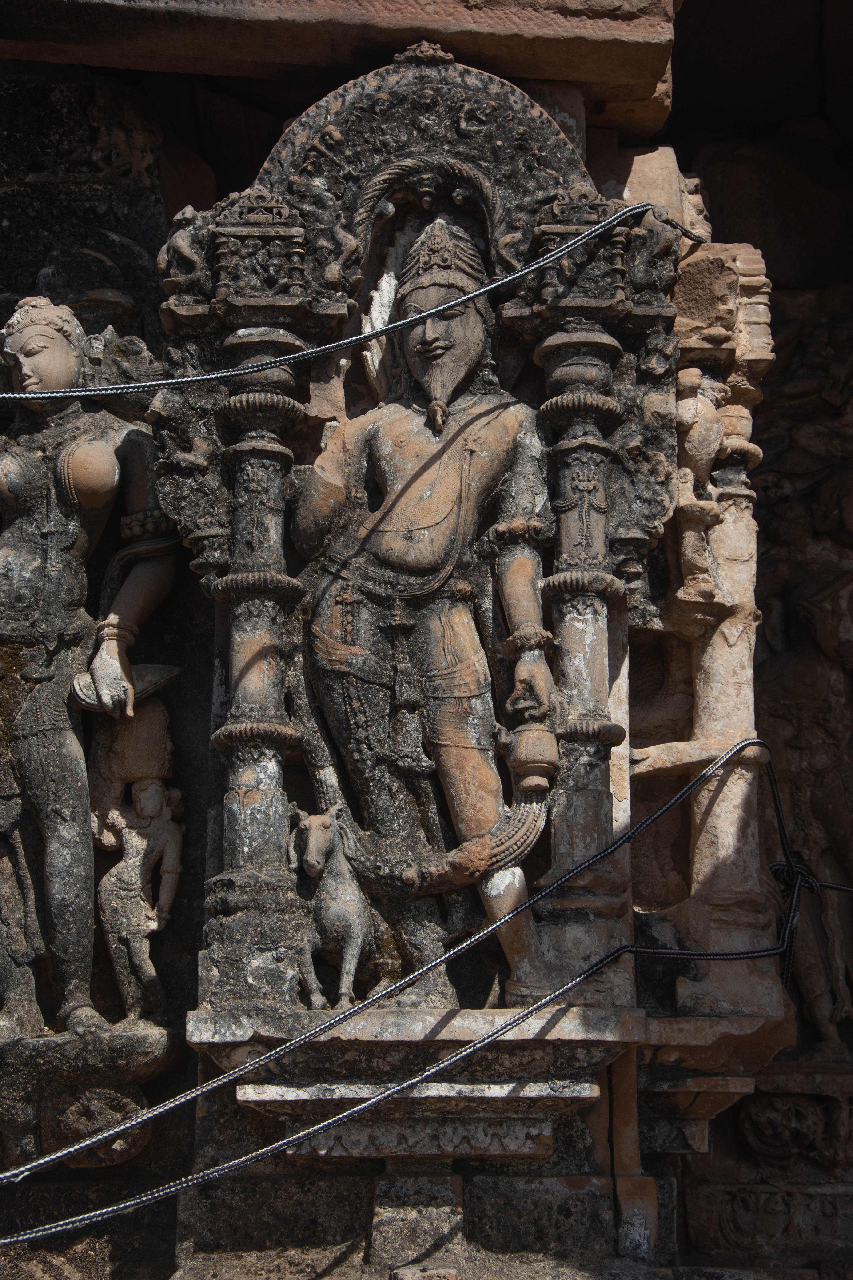 A figure of the dikpala Agni is positioned at one of the karna (corner projection) of the Harshnath Temple. It is on the karna of the southeastern corner, accompanied by his vahana, a ram. On either side of him, surasundaris occupy places at the pratirathas and salilantara-recesses.