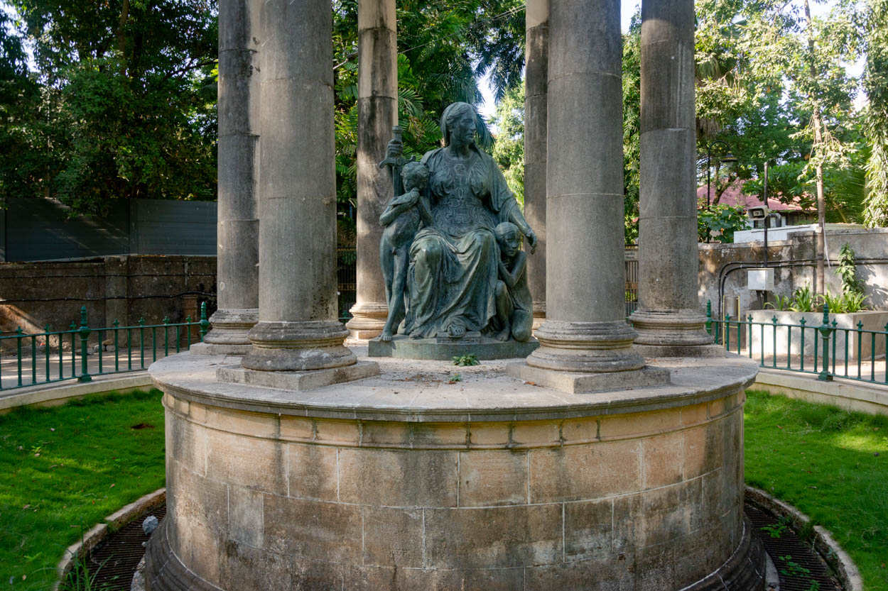 The Frere Temple originally housed a bust of Lady Frere, which was defaced by vandals. The damaged bust was sent to England but was beyond repair. In its place, a bronze statuary sculpted by English sculptor Herbert Hampton (1862–1929) was installed. The statue is mistakenly identified as Queen Victoria, because of its location in (former) Victoria Gardens.