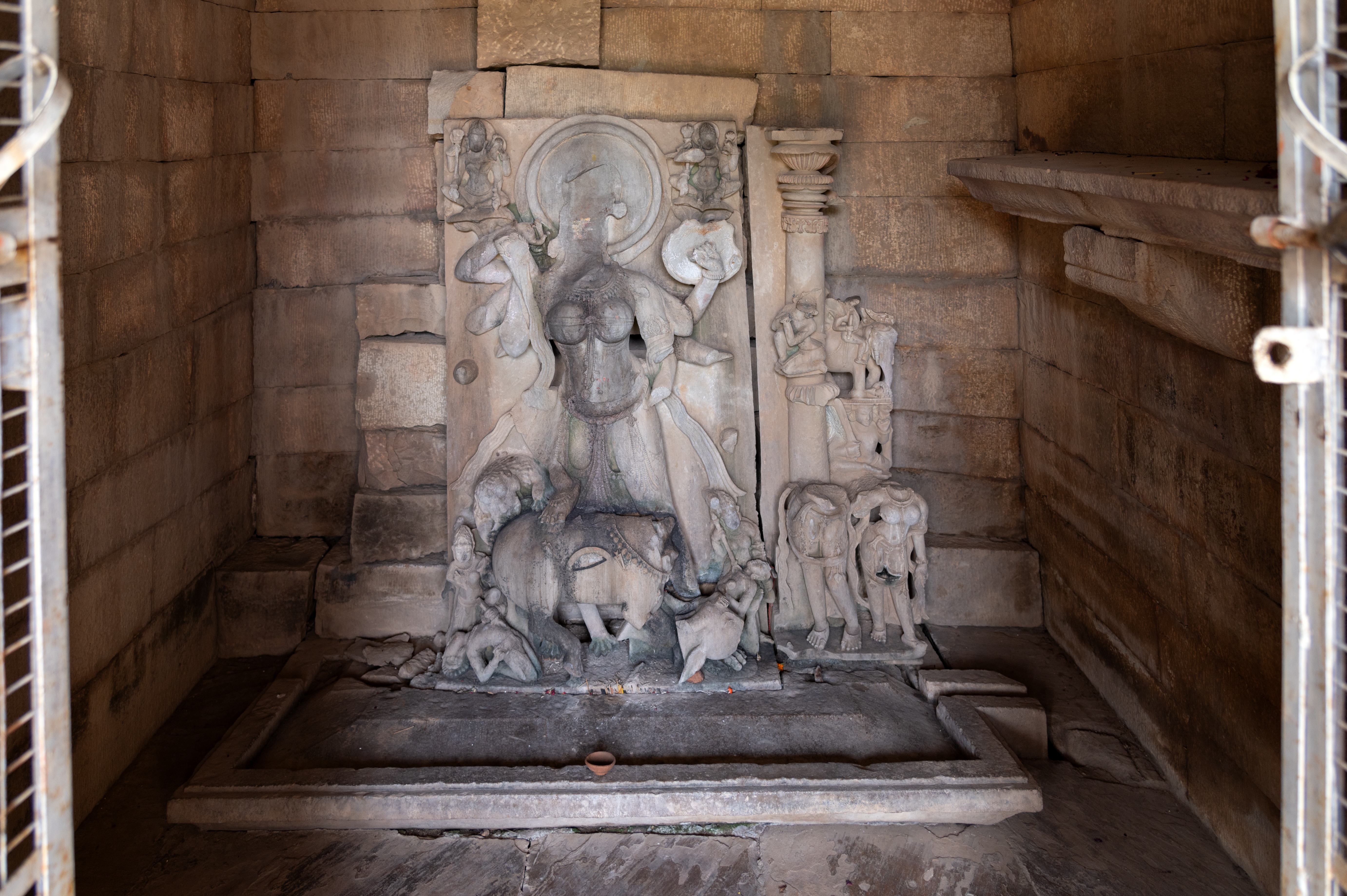 Mahishasuramardini, a detailed view of the presiding deity in the garbhagriha (sanctum sanctorum) of the Mahishasuramardini Temple (Temple 6), Baroli group of temples.