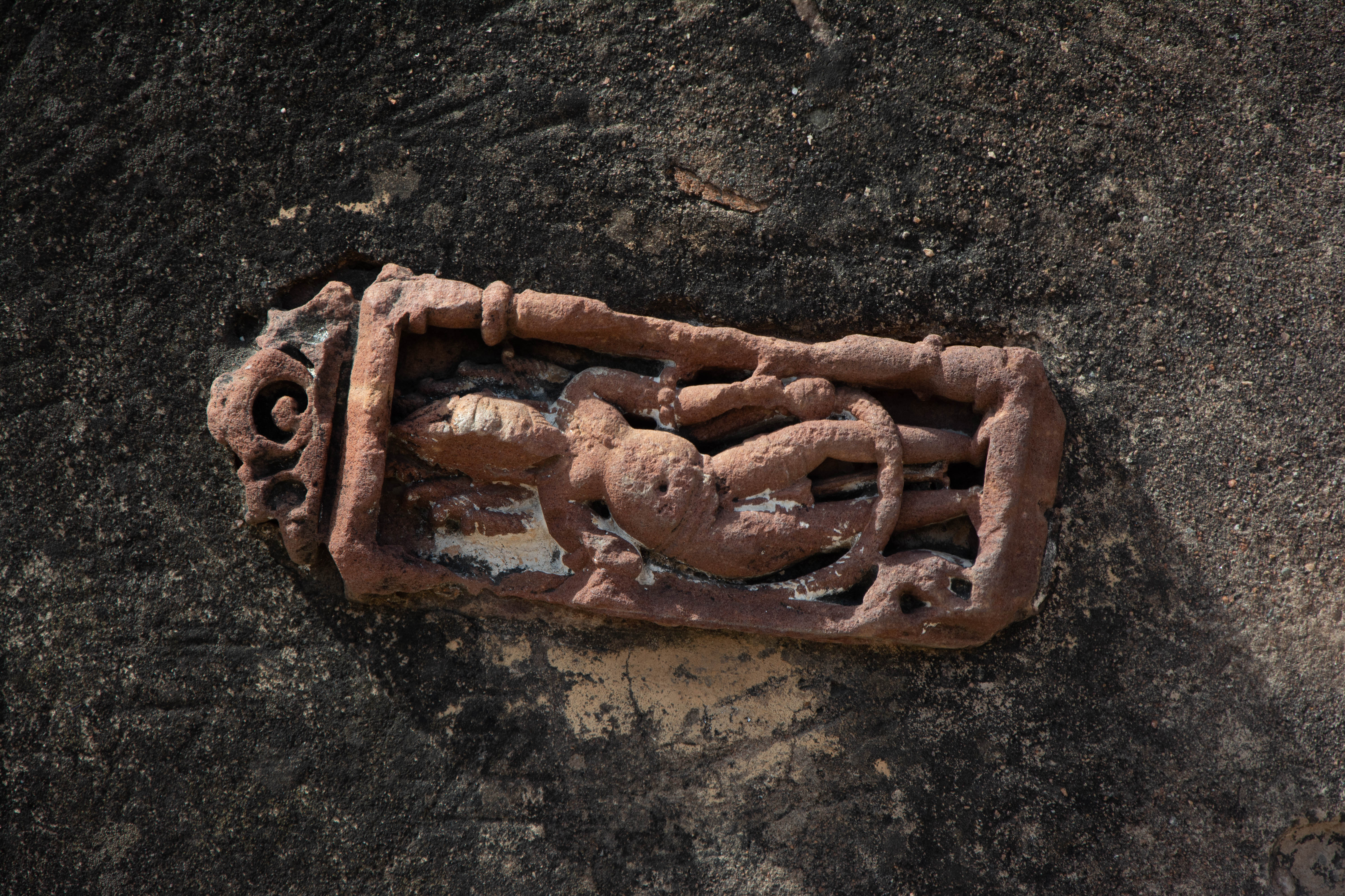 It is likely a figure of the dikpala Agni (the God of fire) holding a kamandalu (pot) in his left hand. The image of a directional deity that once adorned the temple wall and is now affixed on a late medieval structure on Harsha Hill.