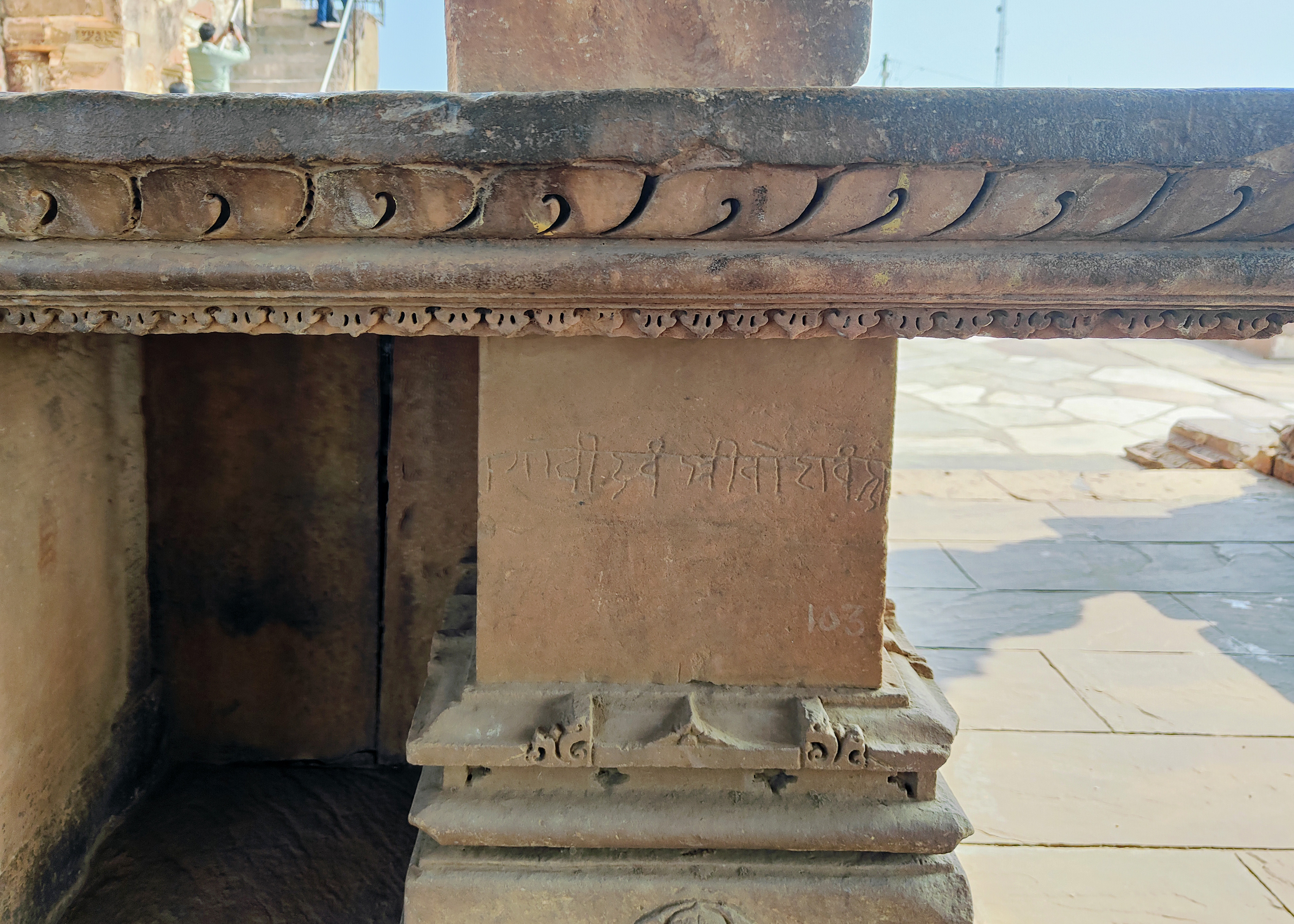 Medieval epigraph at the porch on a pillarlet on the right side of the entrance.